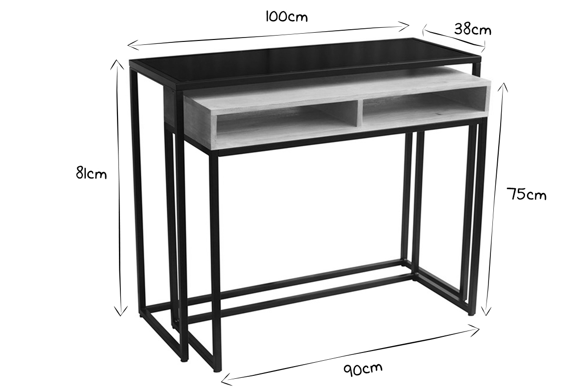 En dessinant ce meuble malin 2 en 1, l'équipe de talentueux designers Miliboo répond à la quête de polyvalence des meubles design ! Spécialement conçue pour les petits espaces, cette console gigogne en bois et métal noir se transforme en un clin d'oeil en bureau fonctionnel avec une surface de travail de 90 centimètres de long et 35 centimètres de large.