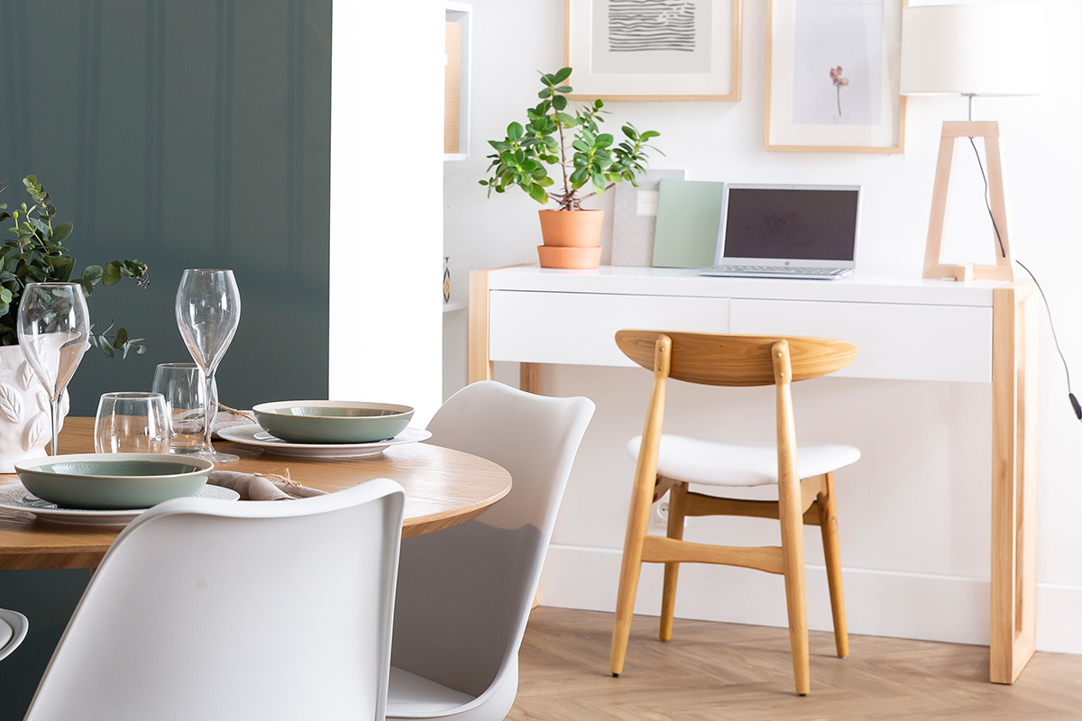 Dans une pièce de vie à l'inspiration déco nordique, cette console scandinave blanche et bois sera indéniablement du plus bel effet !