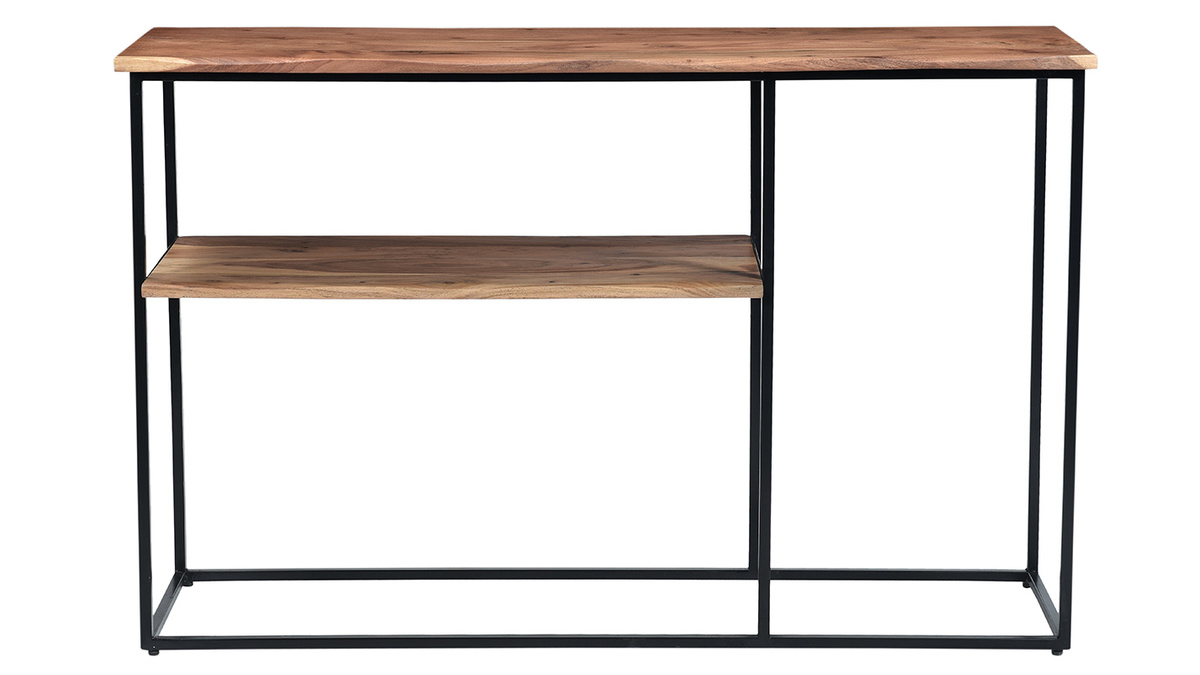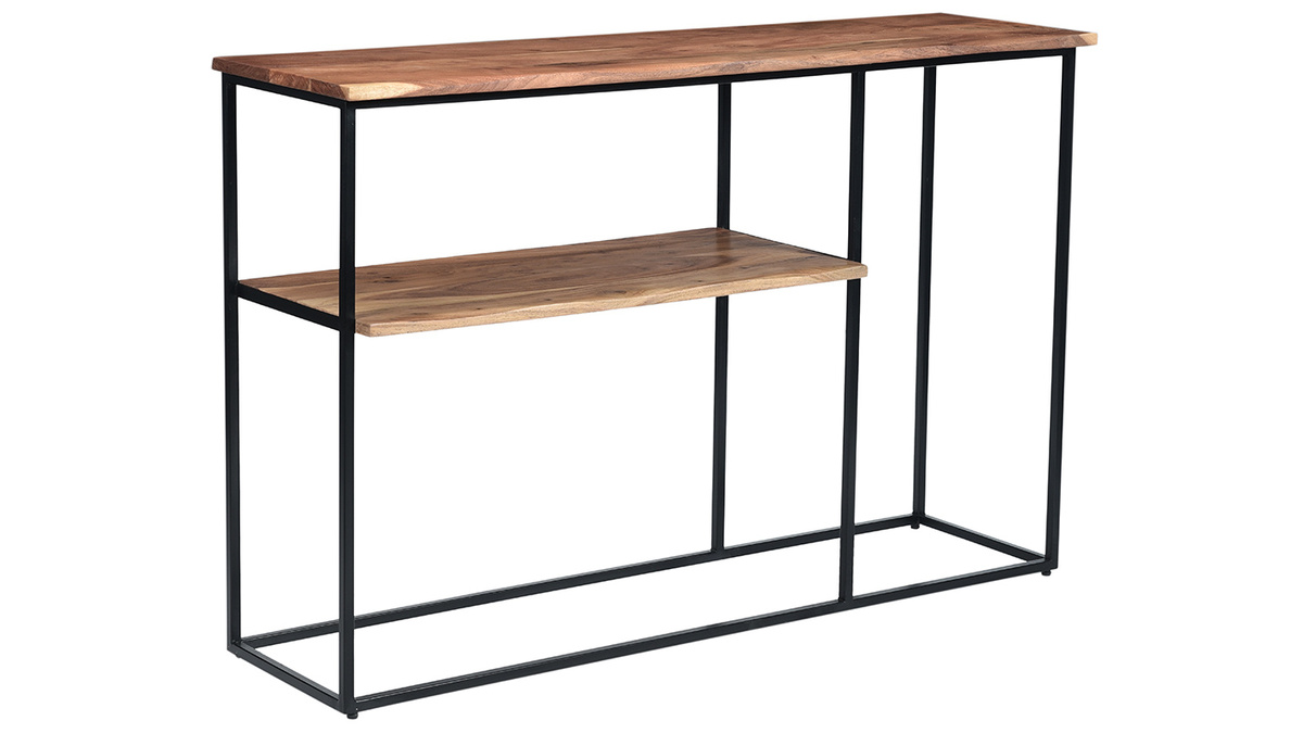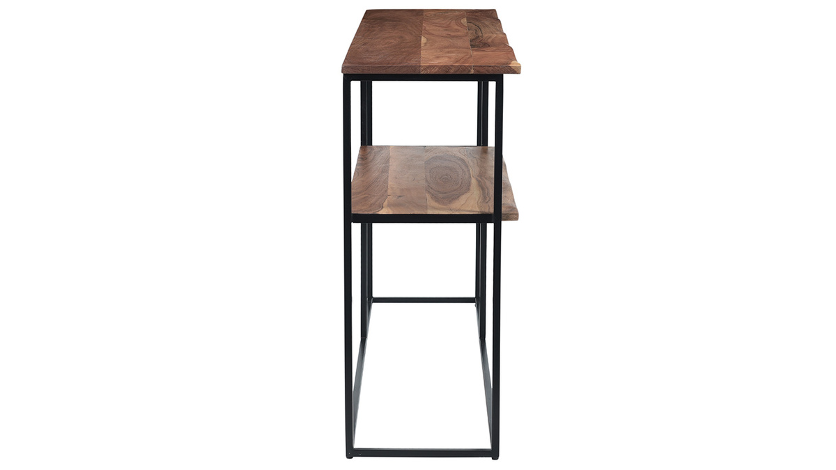 Cette console est avant tout une pièce de mobilier pensée pour organiser les petits espaces. Avec sa grande étagère et son plateau de 122 cm de long et 33 cm de profondeur, elle permet de disposer tout ce qu'on souhaite garder à portée de mains sans encombrer l'espace. Elle est également équipée d'une étagère pour offrir toujours plus de surface de rangement.