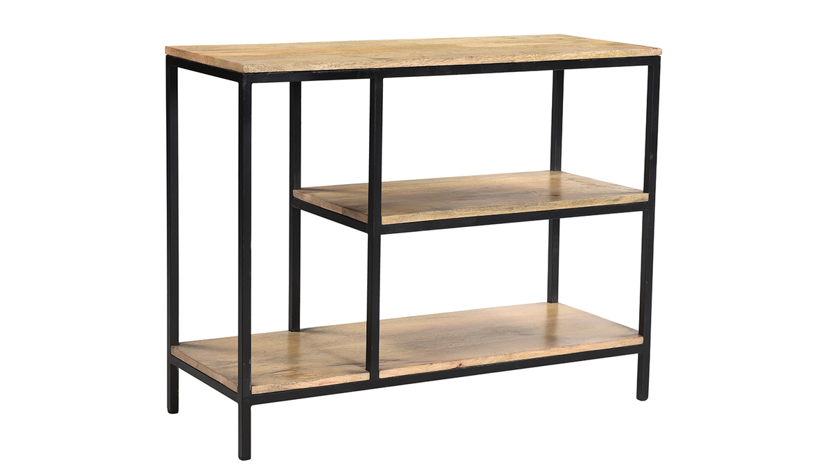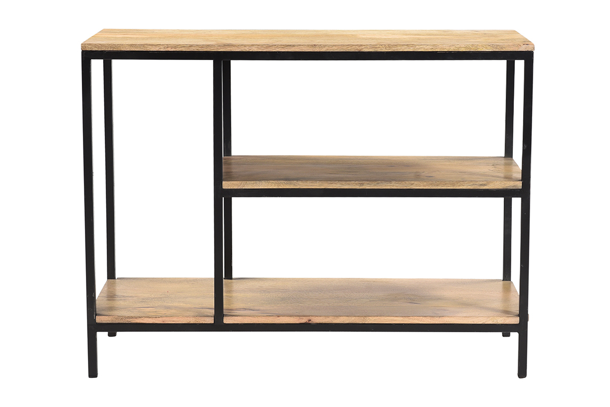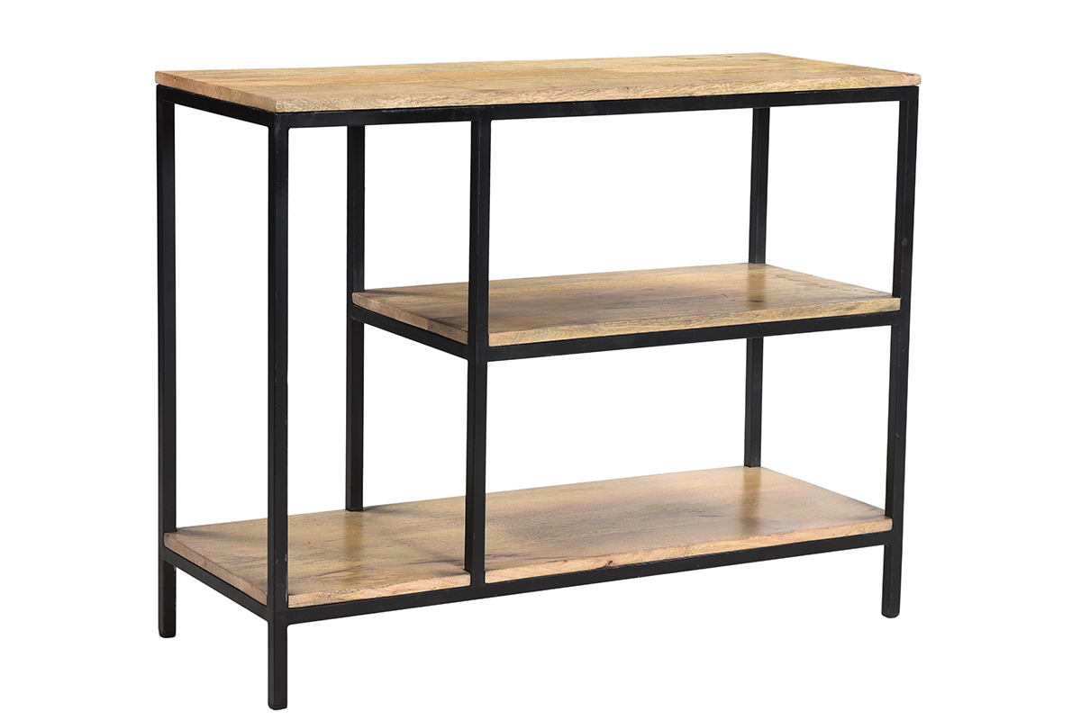 Avec son style brut, la console en manguier massif et métal noir MEYRIN est idéale pour créer un espace de rangement déco et pratique dans toute la maison.