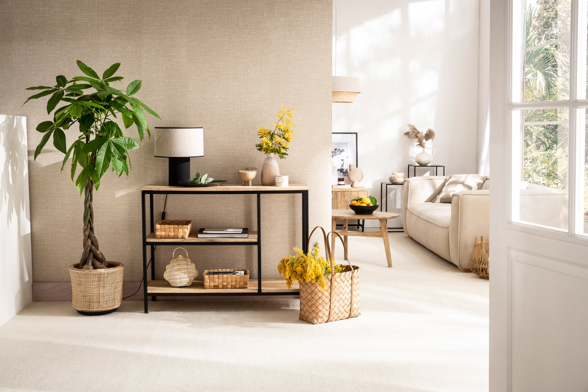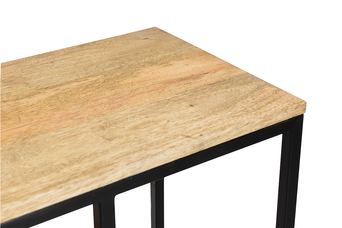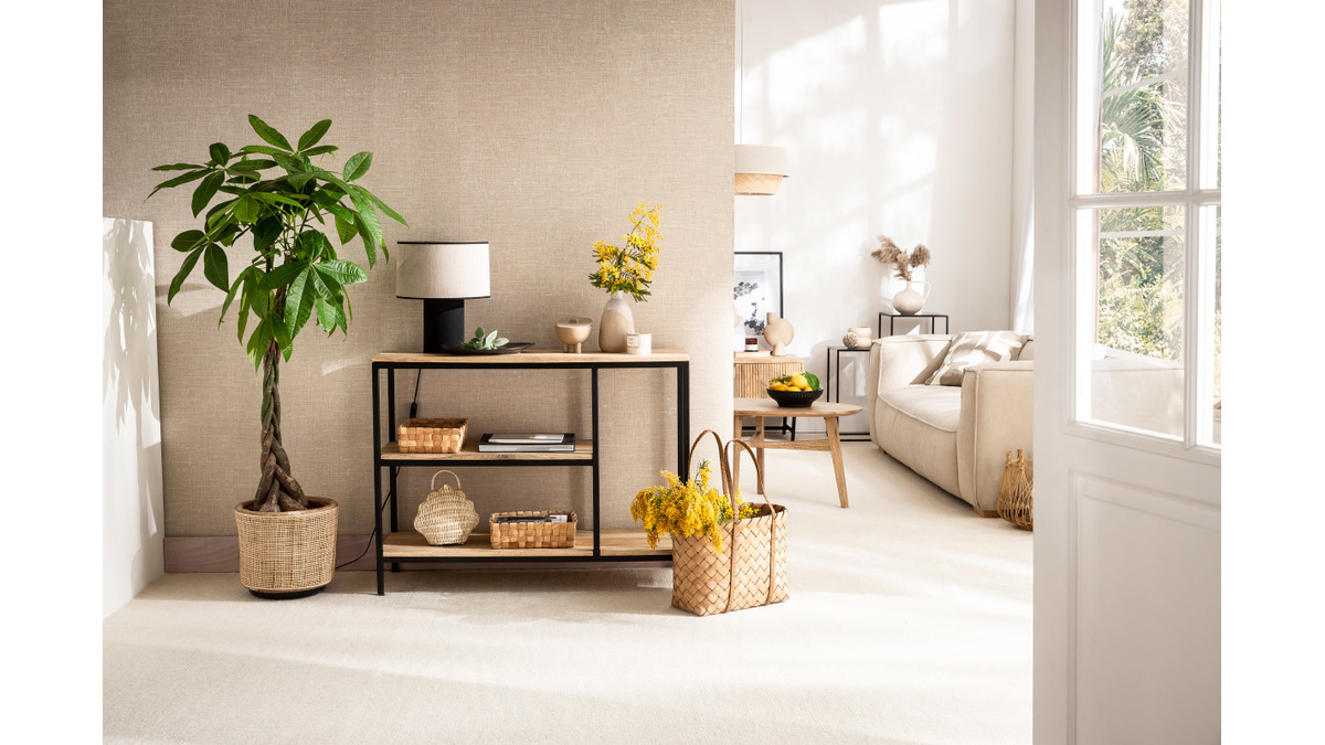 Bois et métal forment un duo gagnant pour une décoration authentique et tendance. L'association de ces matériaux bruts donne du caractère dans un intérieur et se fond parfaitement avec le reste du mobilier. Le manguier massif réchauffe l'atmosphère et instaure une ambiance cosy. Grâce à sa jolie structure en métal noir, la console MEYRIN ajoute une touche industrielle au charme intemporel de ce bois exotique et de ses nervures pleines de nuances.
