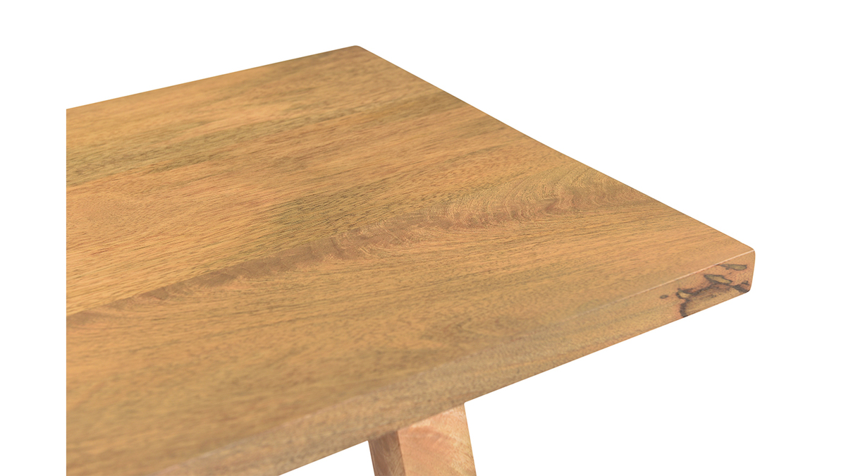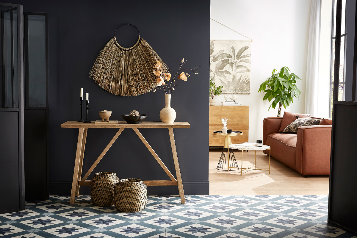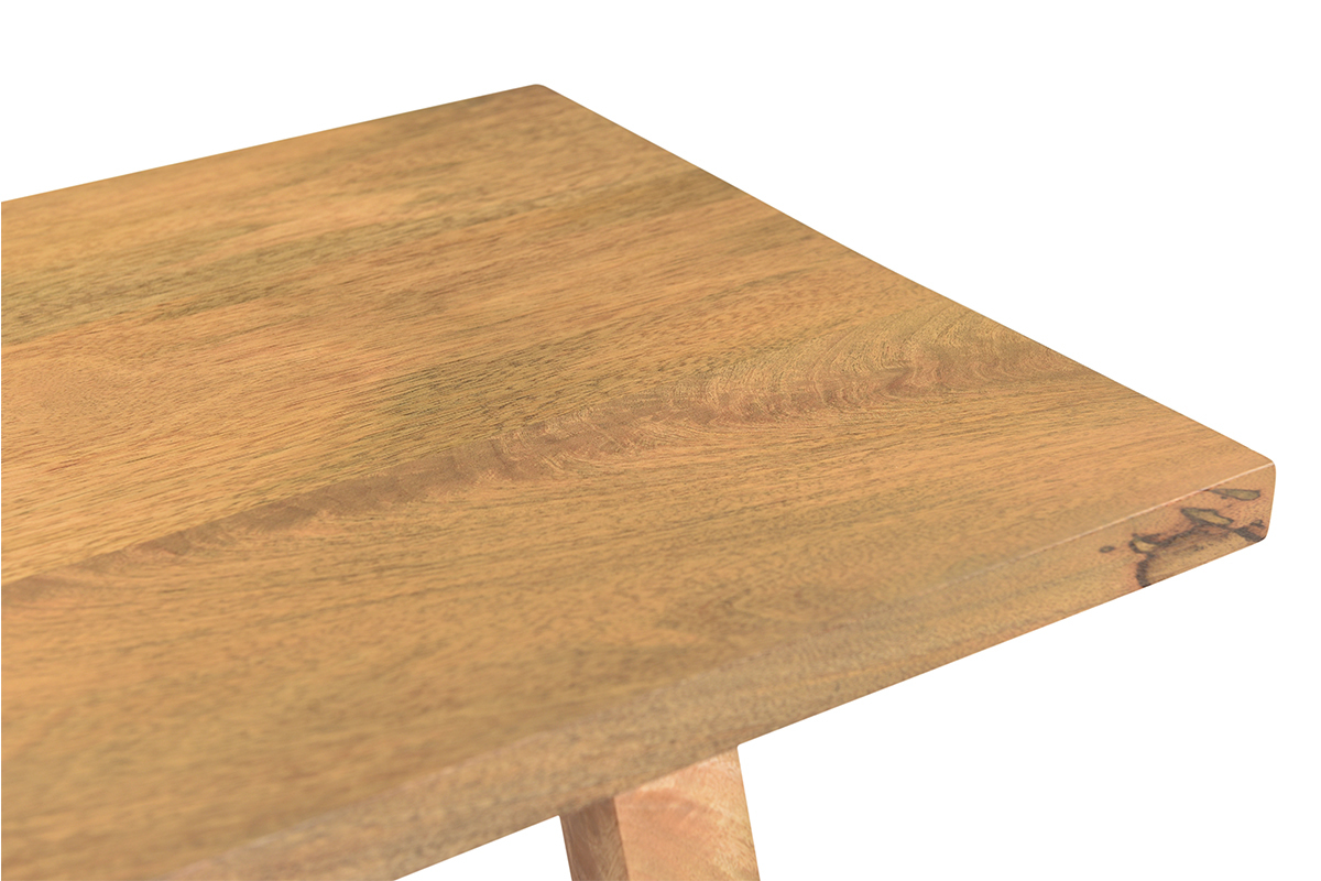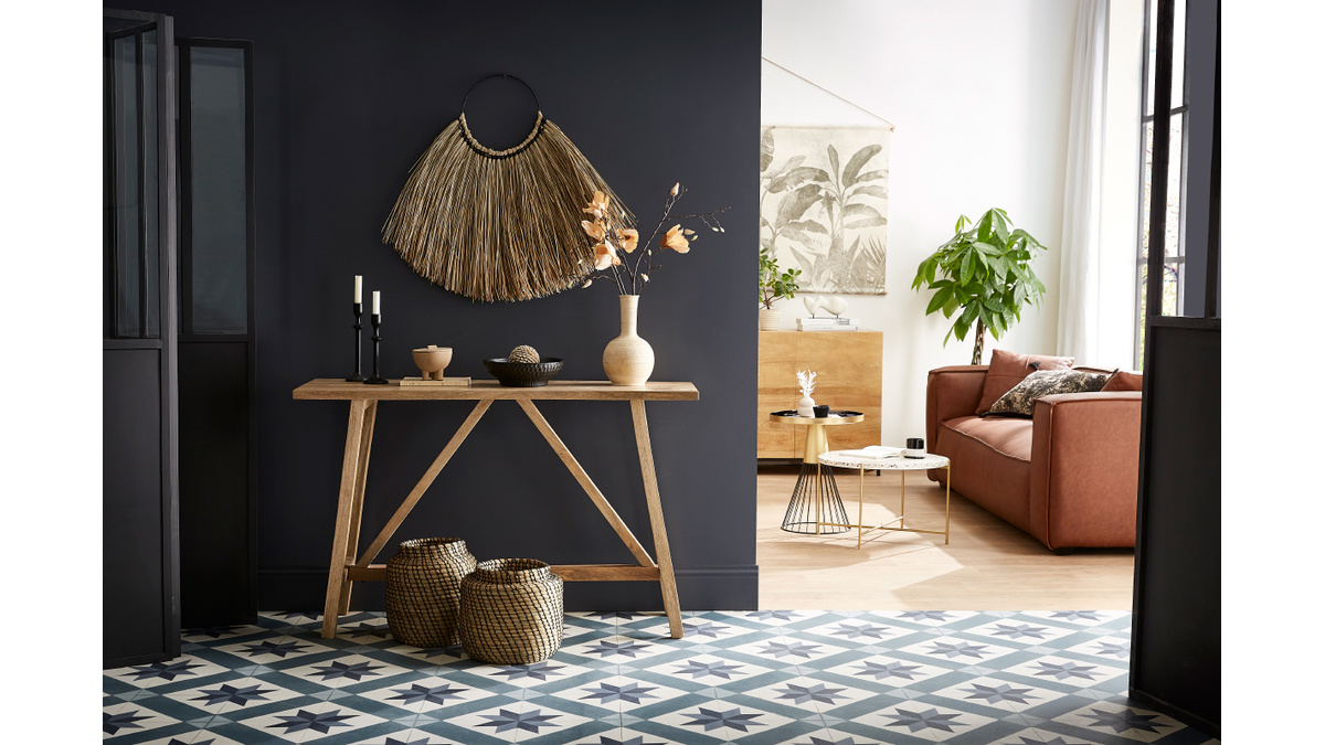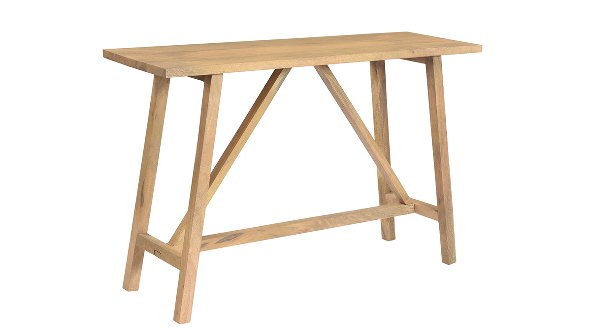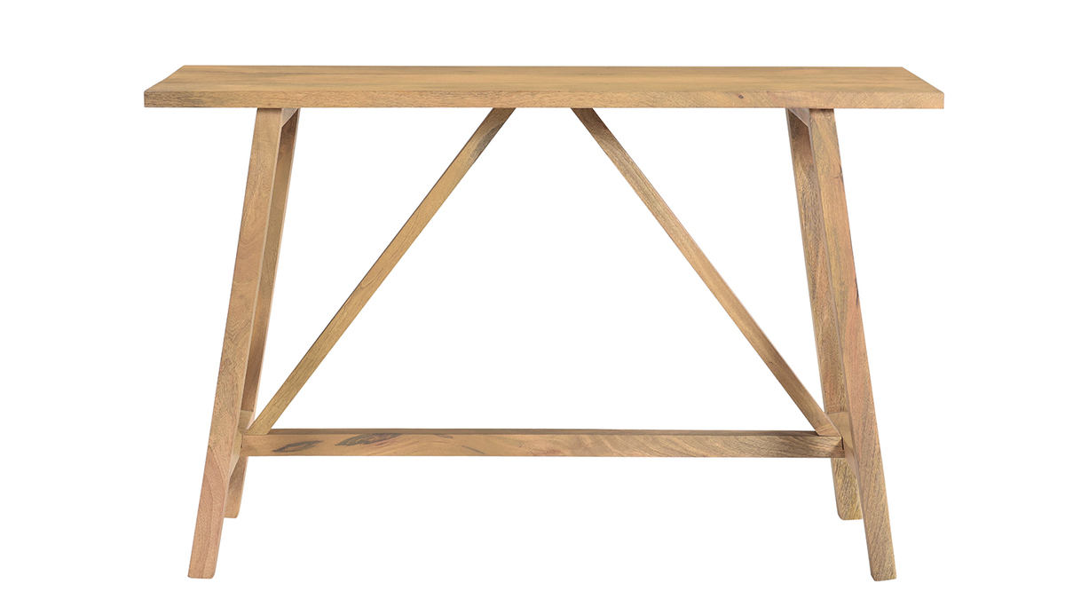 Grâce à ses dimensions (L120 x P36 x H76 cm), cette grande console en bois clair trouve sa place aussi bien dans une pièce à vivre que dans une entrée ou une chambre. Le plateau est idéal pour y déposer des éléments qui sublimeront la déco intérieure. On opte par exemple pour des accessoires en fibres naturelles qui se marieront très bien avec le manguier massif ou encore une lampe à poser design au charme ethnique !