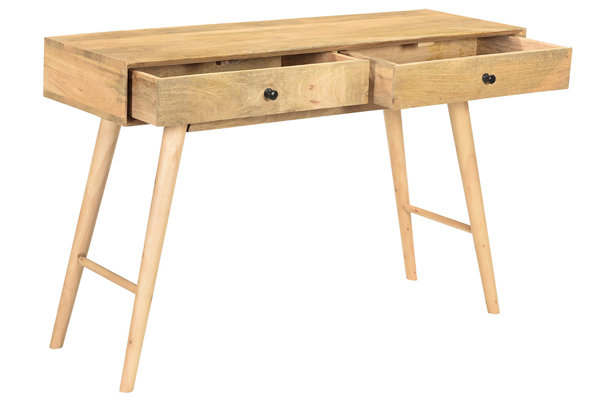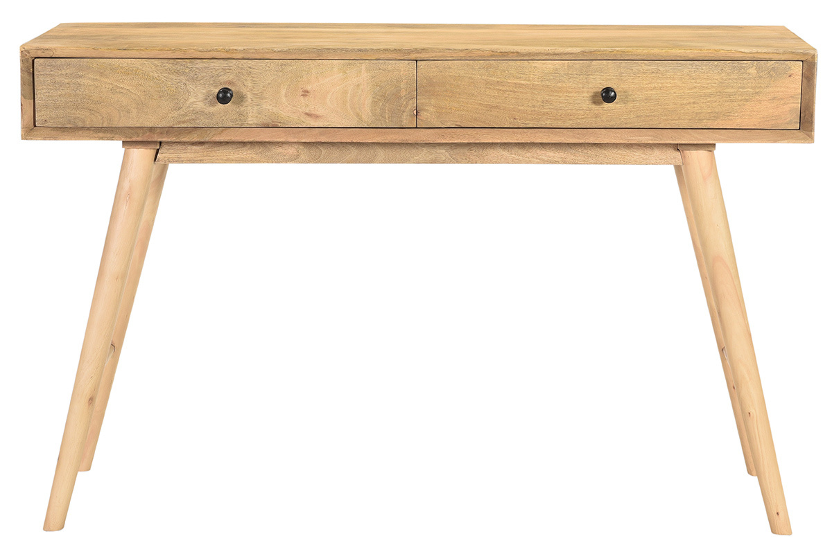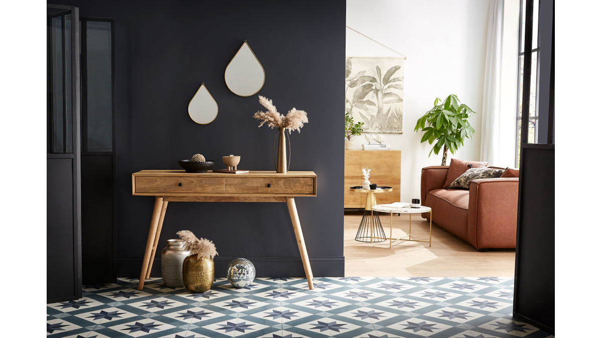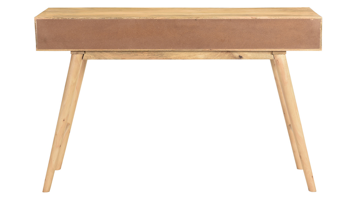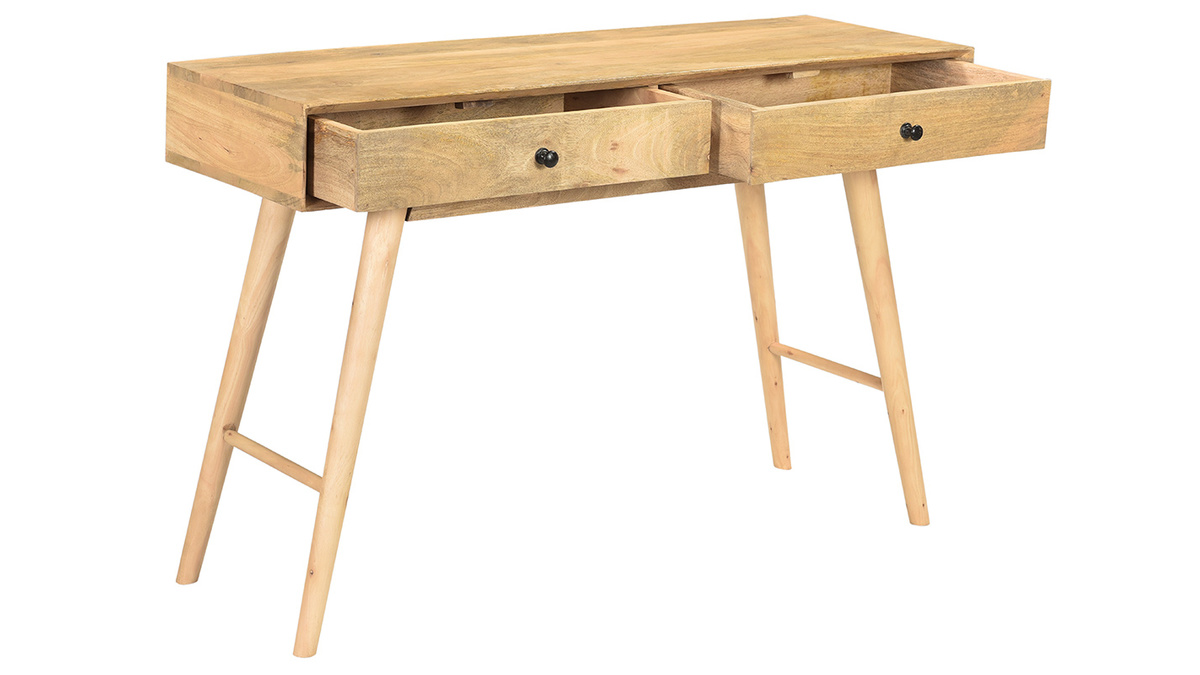 La console avec rangements : parfaite en meuble d'entrée dans un hall ou en coiffeuse dans une chambre à coucher ! Avec ses deux tiroirs, elle permet de garder toutes les affaires du quotidien à portée de mains. Ses dimensions L120 x P38 x H76 cm en font un meuble gain de place à glisser dans de nombreuses pièces de la maison.