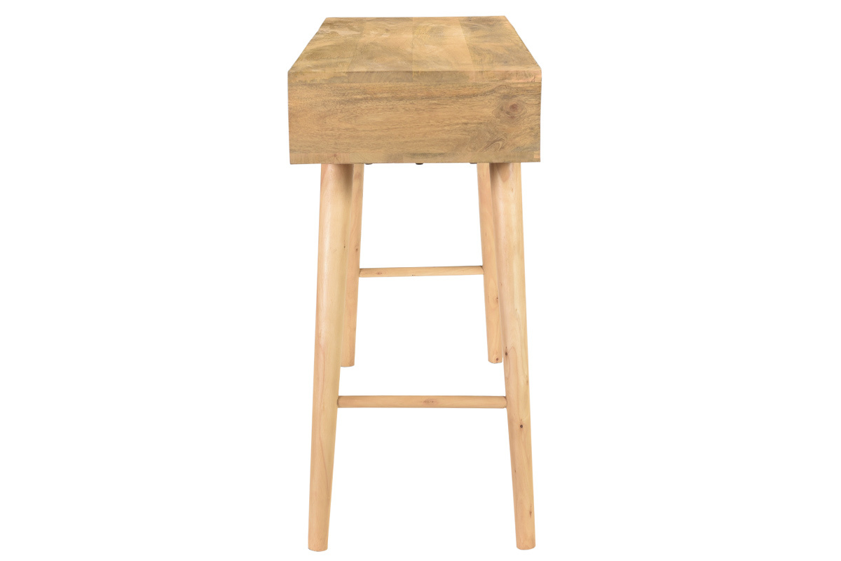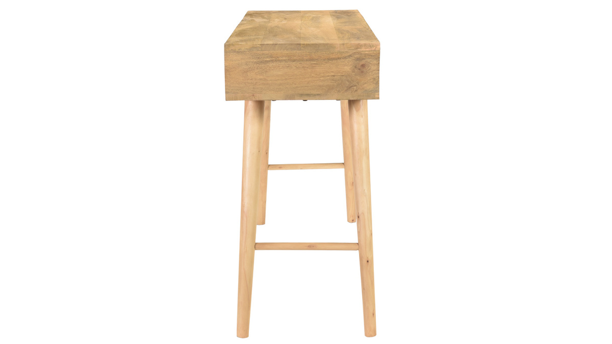 Avec son bois brut et sa forme épurée, cette console en bois massif est un meuble 100 % authentique. C'est une pièce artisanale au charme fou. Fruit d'un savoir-faire unique, cette console 2 tiroirs revisite le style rustique dans une version moderne. Elle mélange lignes droites et bois massif pour un résultat qui ne manque pas de caractère ! Conçue en manguier, ce meuble de rangement en bois offre un rendu chaleureux un brin exotique.