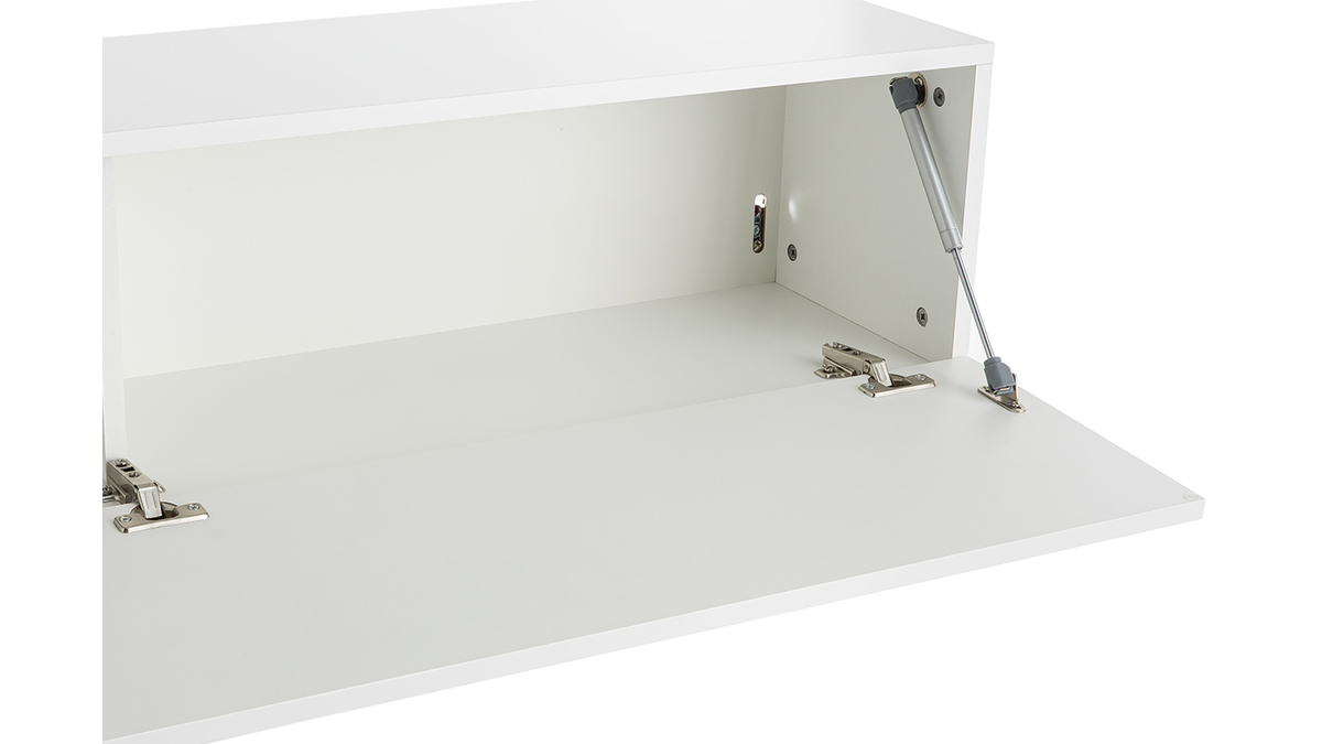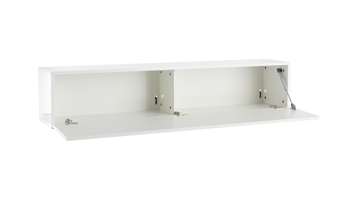 Une fois ouvert, ce meuble de rangement suspendu offre un belle capacité de rangement. ETERNEL se compose de deux niches qui accueilleront les affaires du séjour, télécommande, appareils connectés, magazines...
