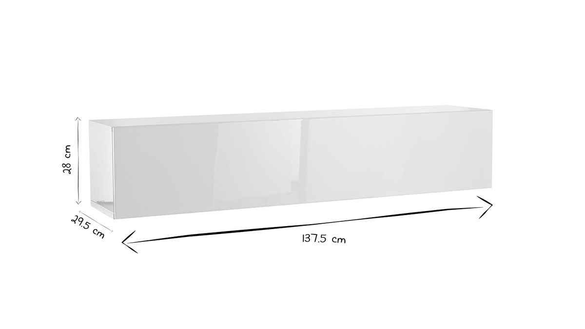Élément mural TV horizontal finition blanc laqué brillant L138 cm ETERNEL livré à assembler.
