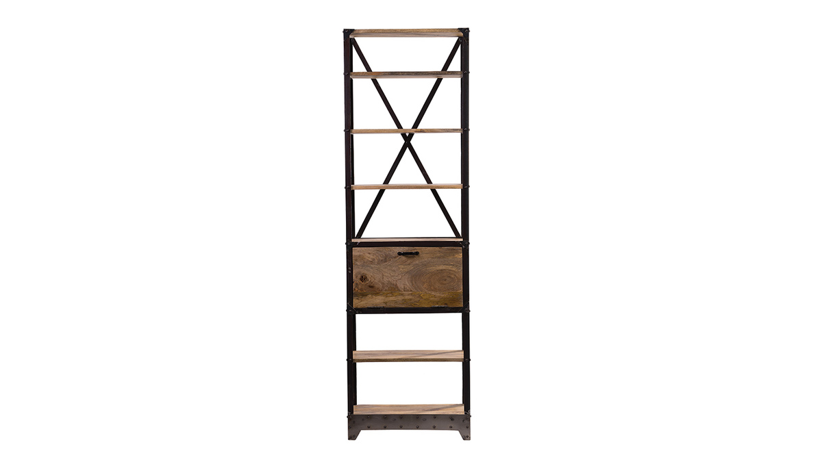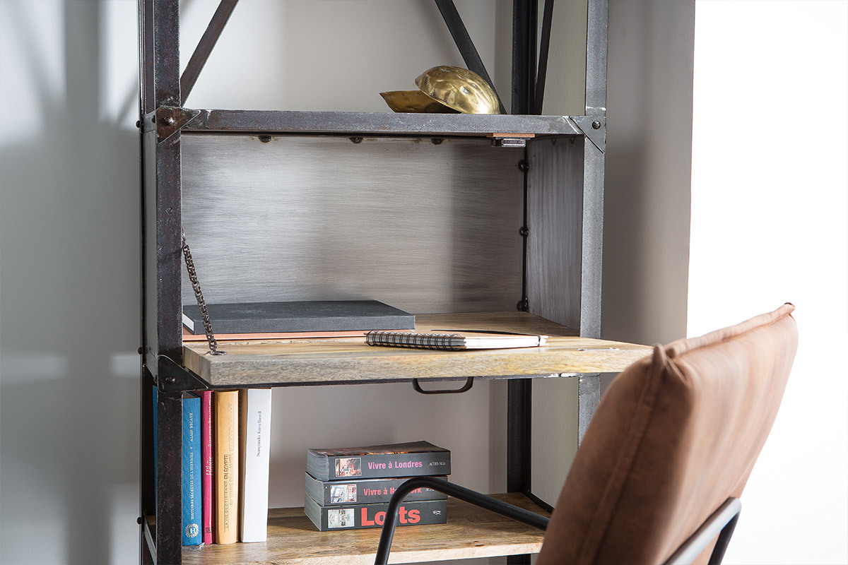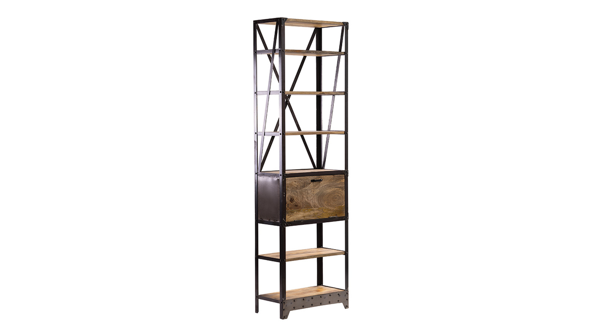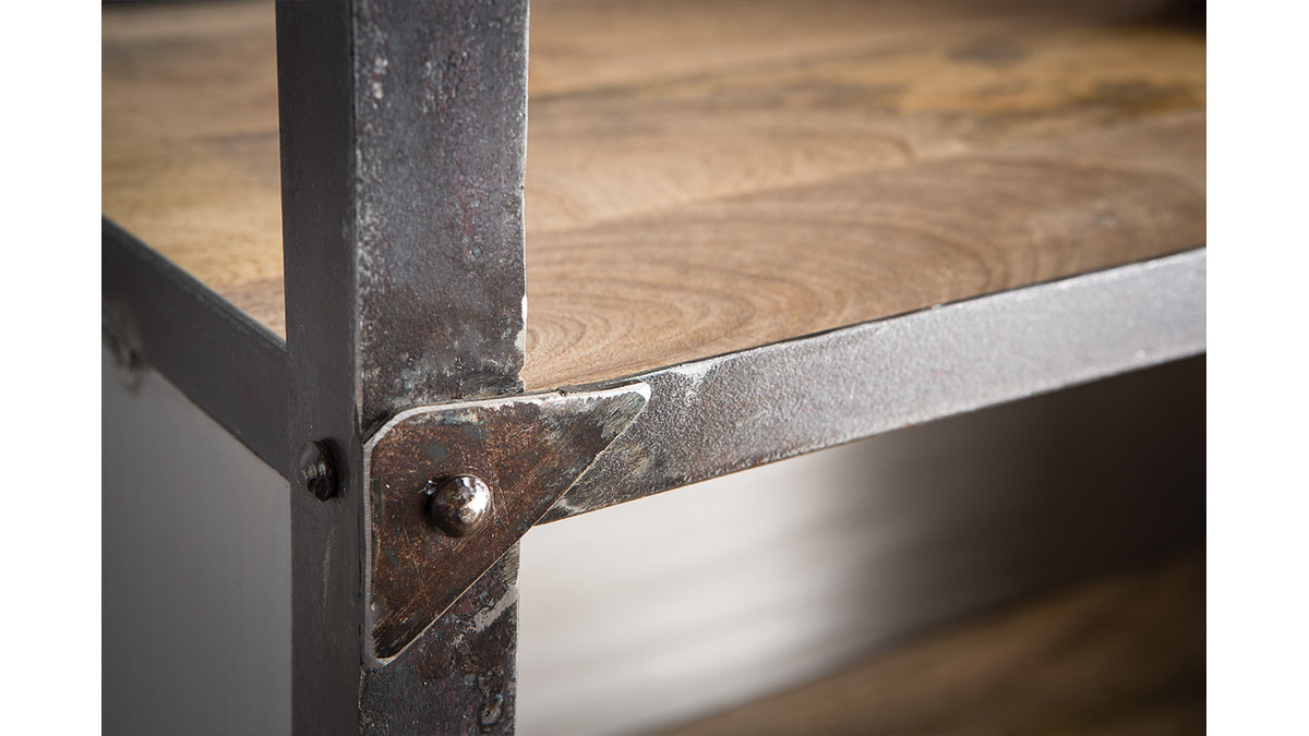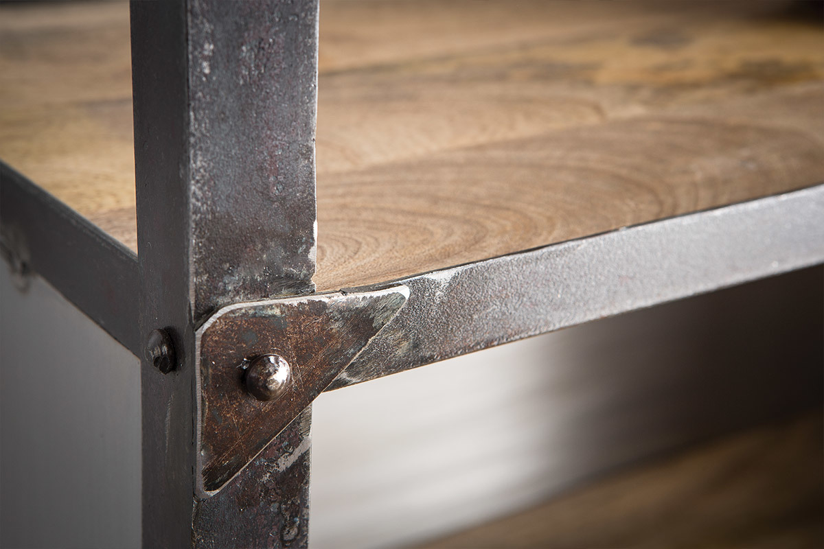 Un esprit loft très marqué pour cette étagère industrielle ATELIER : l'alliance de l'acier brut et du manguier massif, le contraste des matières et des couleurs en font déjà un futur classique !