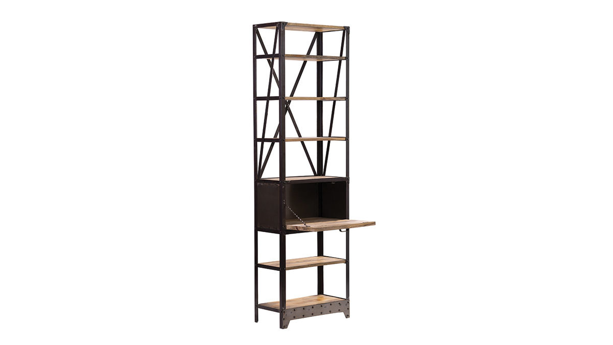Dans un salon, une chambre ou un bureau, cette étagère en bois massif modernisera et donnera du caractère à votre décoration. Son look vintage est obtenu grâce à une fabrication artisanale : sa patine, ses marques d'usures sont travaillées et résultent d'un ponçage et de soudures réalisées à la main.