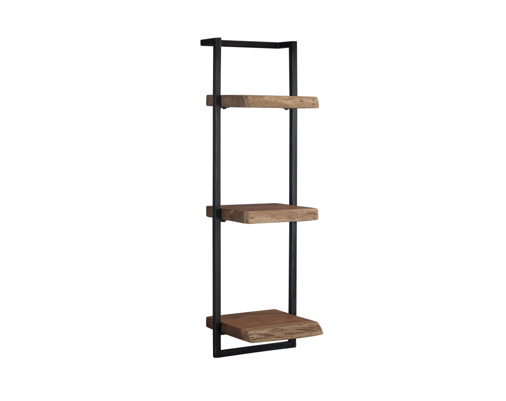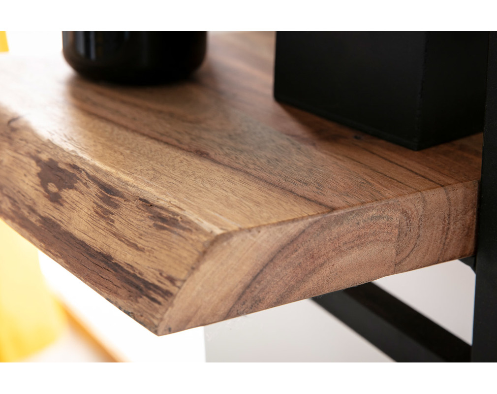 Avec ses dimensions (30 x 25 x 100 cm), cette étagère convient aussi bien à une entrée, comme rangement mural, qu'à une pièce de vie ou une chambre. Elle est composée de trois tablettes solides, réalisées en acacia, pouvant accueillir des livres comme des cadres photos ou de jolies plantes vertes.