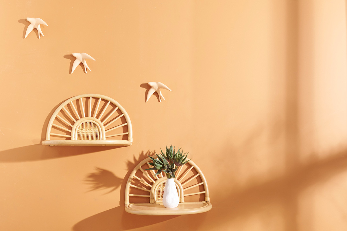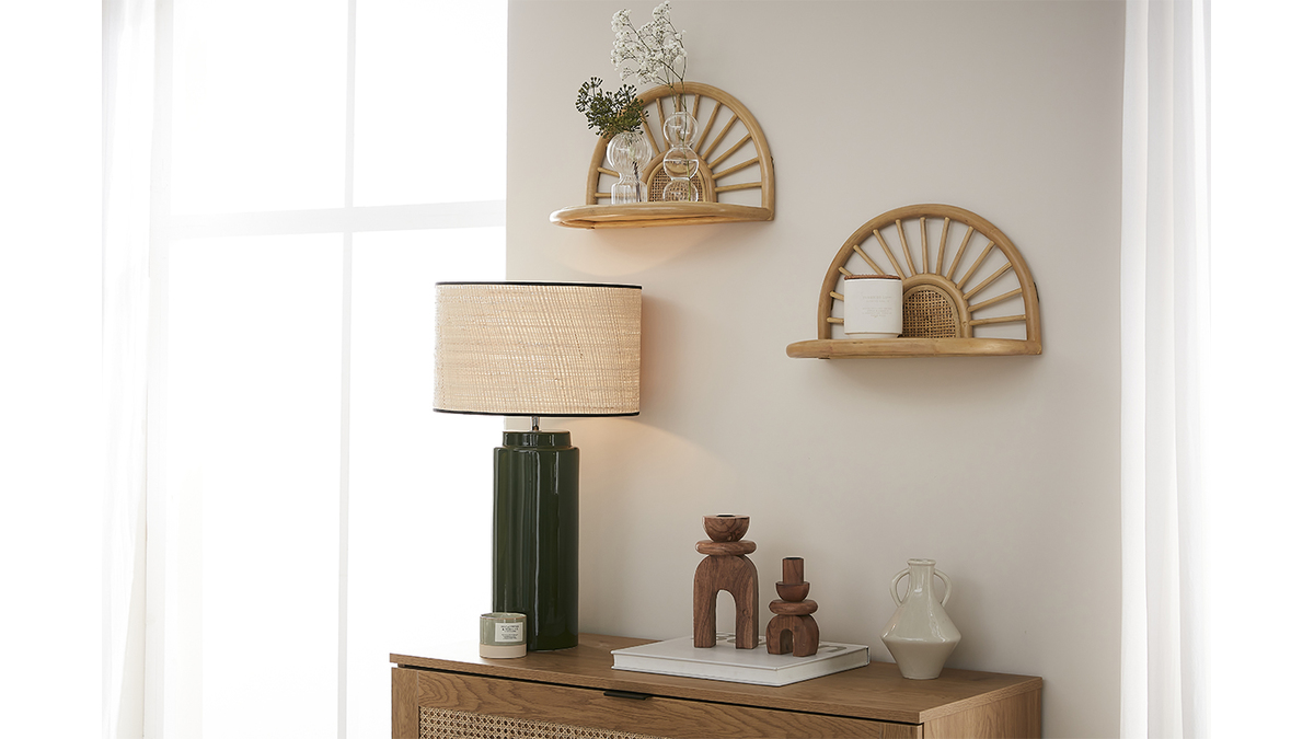 Style bohème ou look vintage ? Les étagères BOW conjuguent les deux ! À la beauté purement naturelle, leur joli cannage encerclé de tiges de rotin inspire à la poésie. Rayonnants d'authenticité, ce sont des éléments déco faciles à adopter qui font véritablement leur effet !