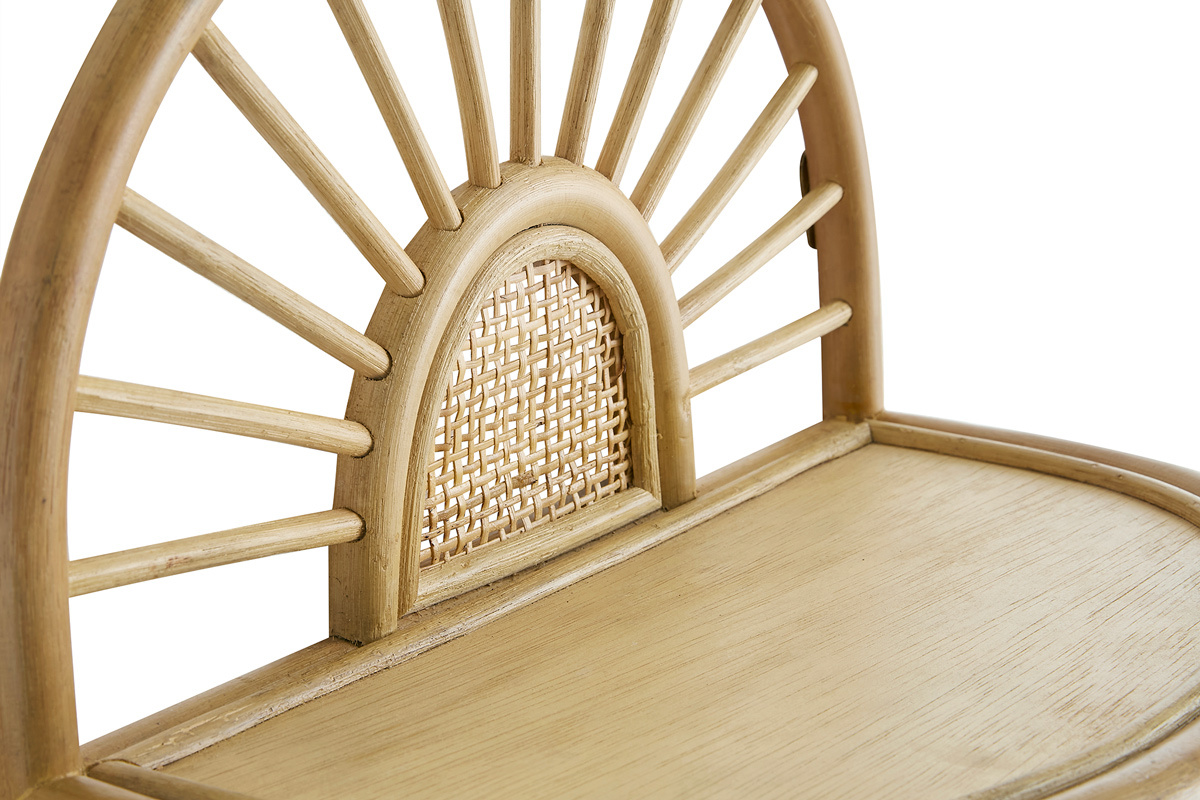Dépoussiérez régulièrement avec un chiffon sec ou un aspirateur. Pour un nettoyage complet, utilisez de l'eau chaude avec un peu de lessive et quelques gouttes d'ammoniaque. Une fois rincé et séché, vous pouvez nourrir le rotin avec de l'huile de lin et le lustrer avec un chiffon.