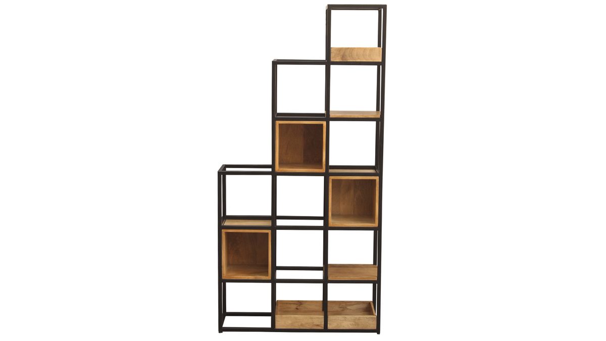 Ce grand meuble de rangement à casiers (dimensions totales L90 x P28 x H180 cm) présente une succession de casiers ouverts et fermés. L'ensemble est composé de 2 plateaux plats, 2 plateaux hauts (H7,5 cm) et 3 niches carrées (L25 x P28 x H24 cm). Ces éléments mettront en valeur vos plus beaux objets de décoration, livres, cadres ou encore plantes vertes !