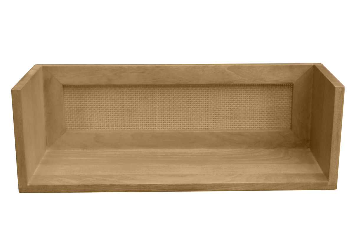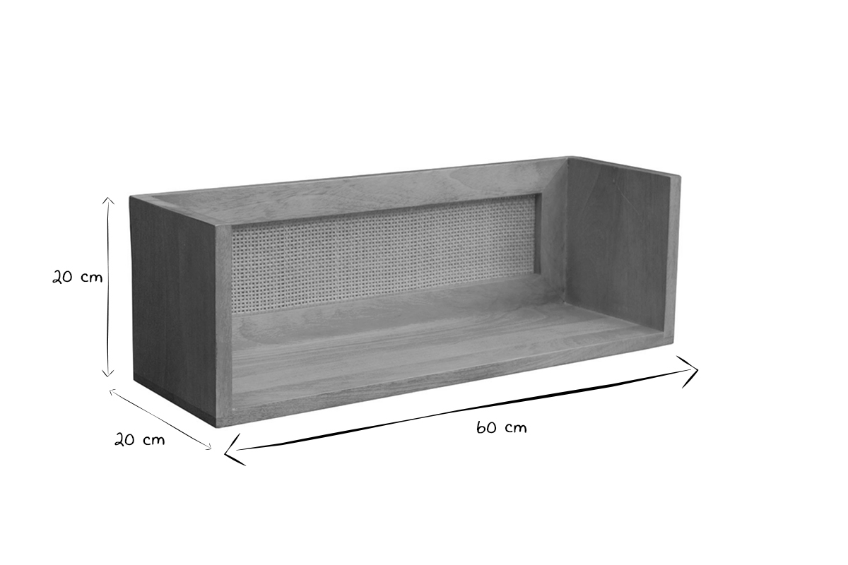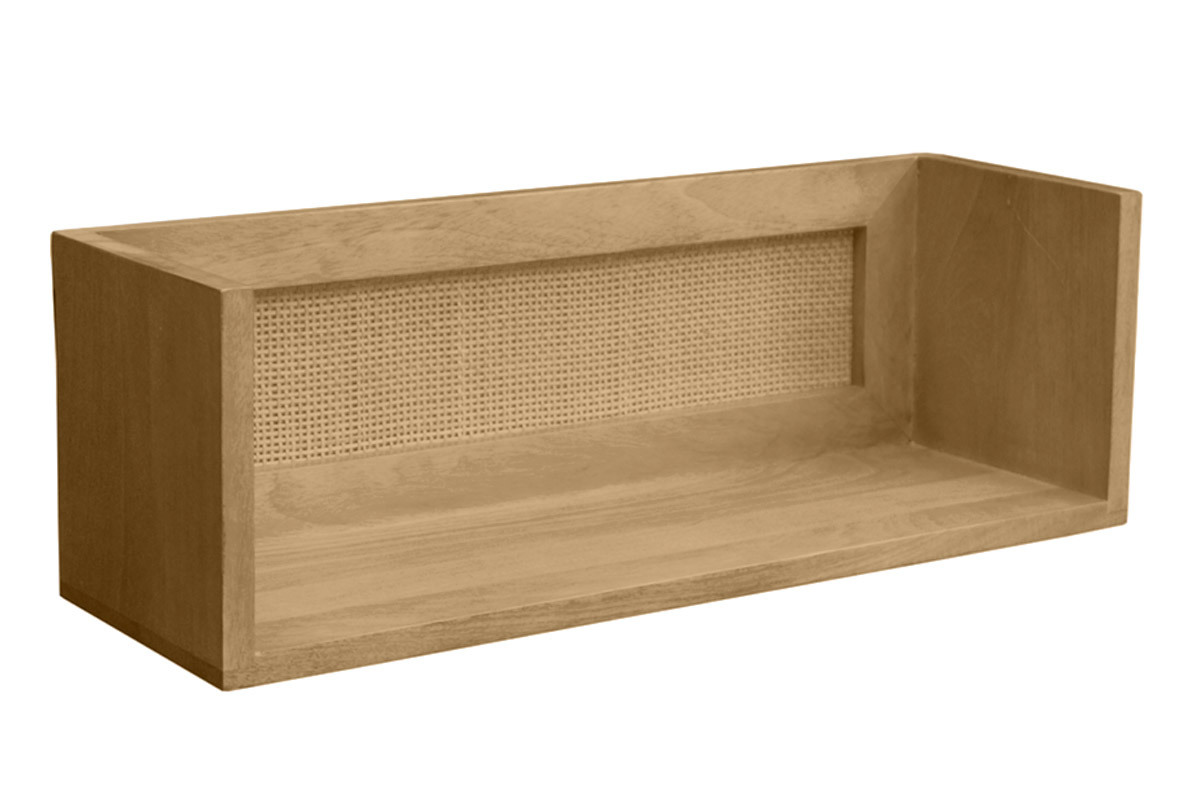 Tablette étagère déco, cette solution de rangement se fond parfaitement dans la décoration d'intérieur ! On imagine cette petite étagère linéaire en bois et cannage (dimensions L60 x P20 x H20 cm) habiller un "mur d'accent" aux côtés d'une applique murale design, de miroirs et de tableaux.