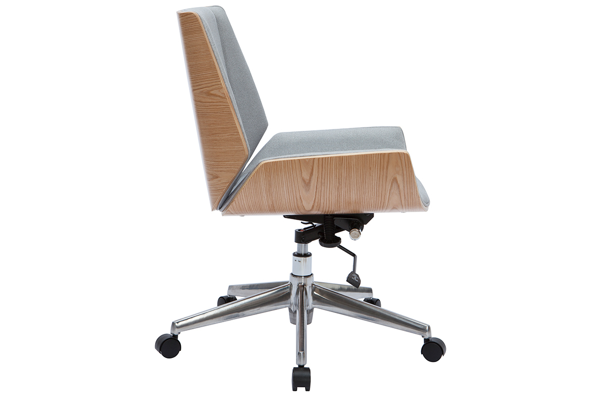Ce joli fauteuil de bureau aux lignes modernes habillera parfaitement votre bureau d'inspiration scandinave ou contemporaine. Sa structure en contreplaqué placage érable blanc et son revêtement en tissu gris apportent chaleur et authenticité à l'espace de travail. Caractère du bois et douceur du tissu forment un parfait duo !