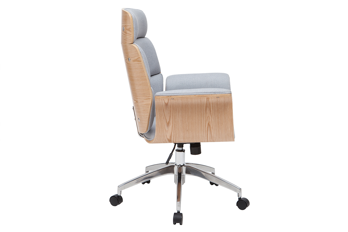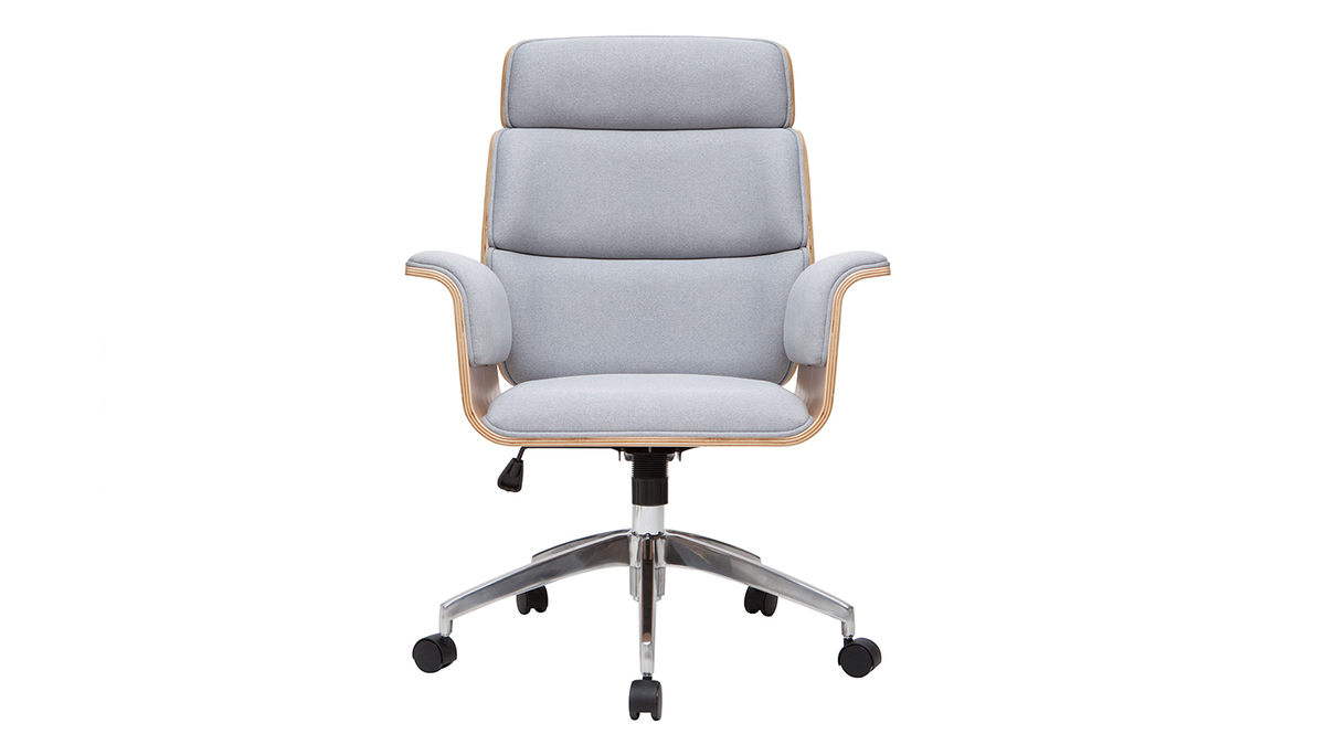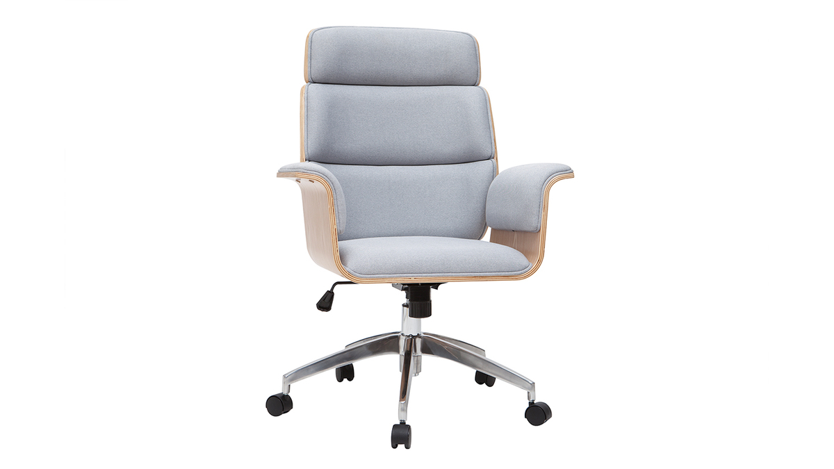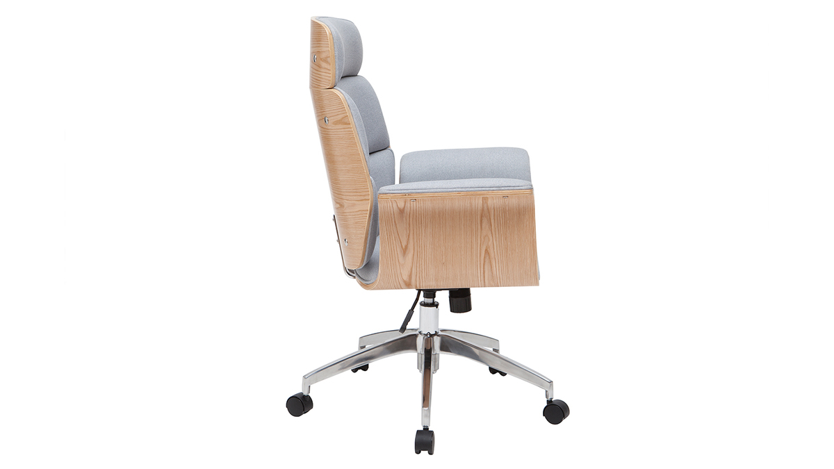 Une structure finition bois clair, une assise contrastante en tissu gris, des lignes tout en courbes... ce fauteuil de bureau confortable possède toutes les qualités d'une assise tendance. On apprécie particulièrement ses accoudoirs recourbés et son dossier rembourré qui donnent à l'ensemble un style unique.