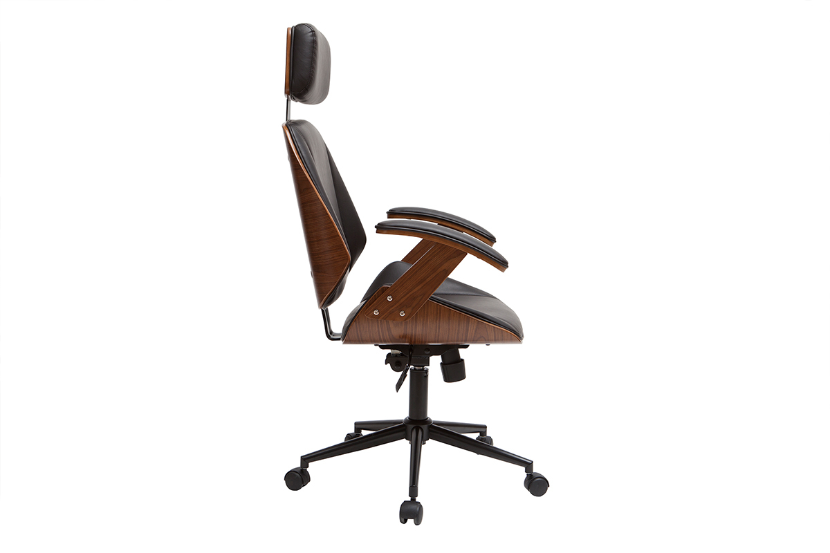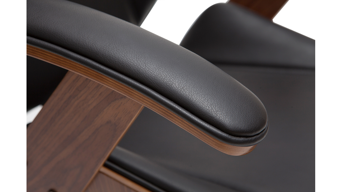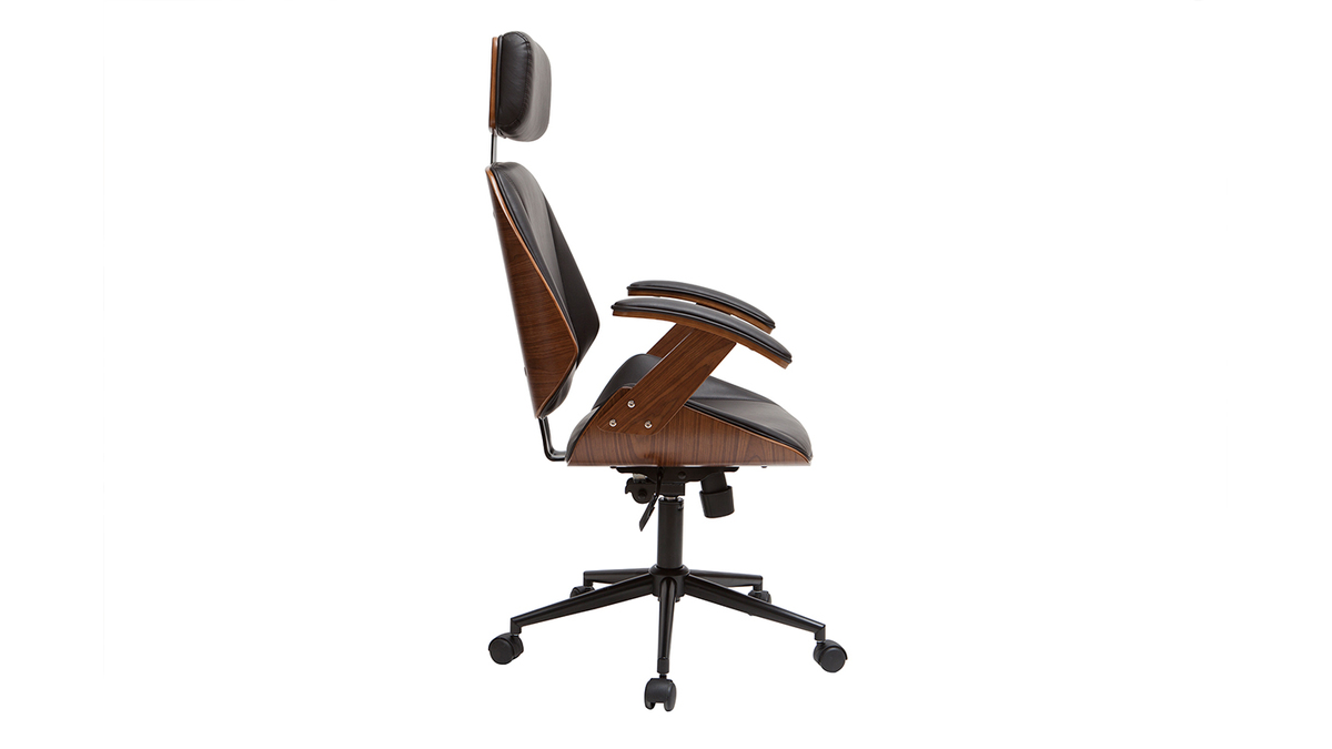 Côté design, MUSK rend une copie sans faute. Une magnifique structure en contreplaqué placage noyer enveloppe une assise et un dossier rembourrés en polyuréthane noir. Ce duo d'exception offre un rendu élégant, un brin rétro. Il trouve sa place dans les bureaux modernes comme les espaces de travail d'inspiration vintage. Avec son look soigné, ce fauteuil de bureau ergonomique habille à lui seul la pièce.