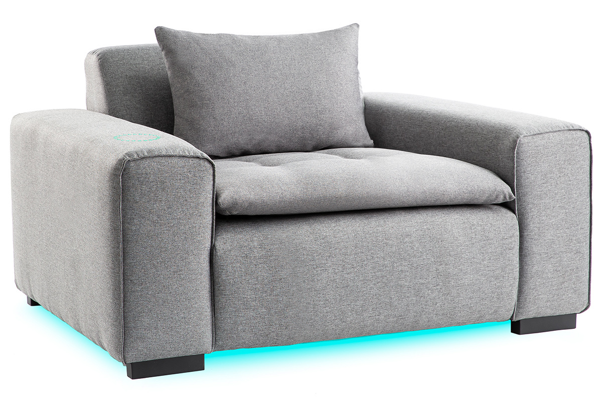 Avec son assise généreuse, son coloris intemporel et sa forme moderne, le fauteuil connecté made in France n'oublie pas d'être un siège de salon confortable et design. Il existe également en version canapé 4 places ou 3 places.