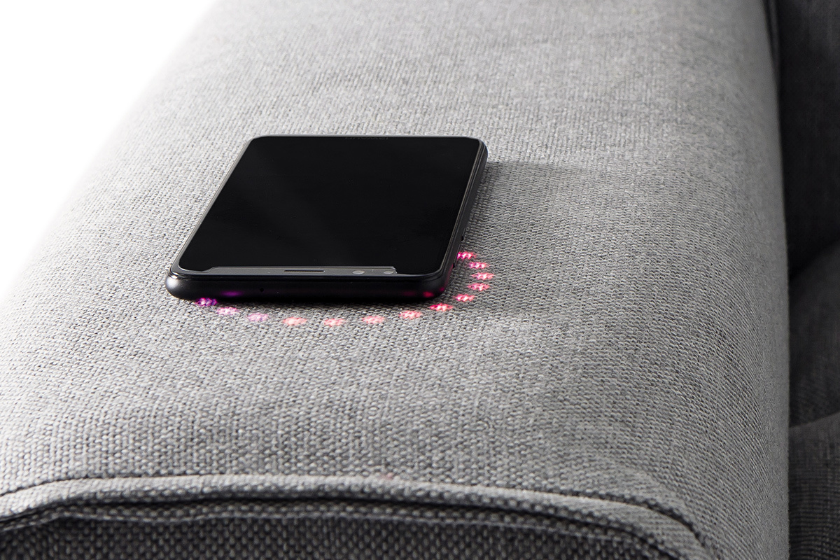 Un chargeur sans fil Qi a été intégré à l'accoudoir pour votre smartphone. Oubliez les câbles et profitez de l'intégralité des fonctions du fauteuil connecté, confortablement installé.