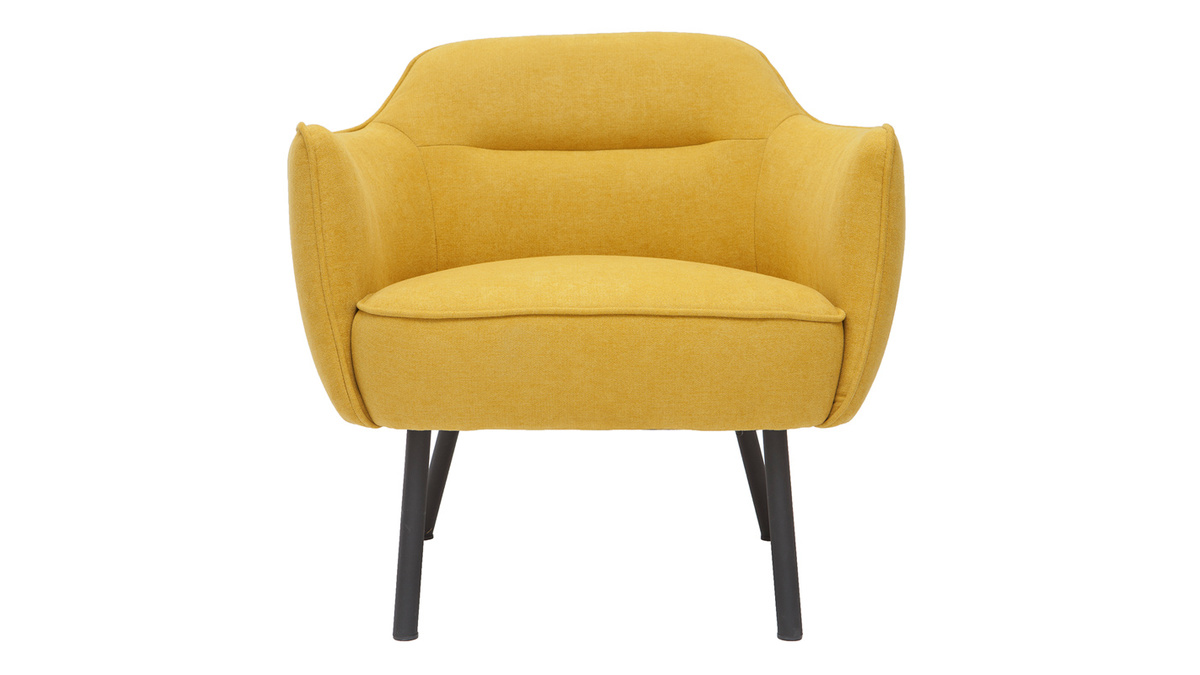 Fauteuil jaune moutarde livré prêt à assembler : seuls les pieds sont à fixer.