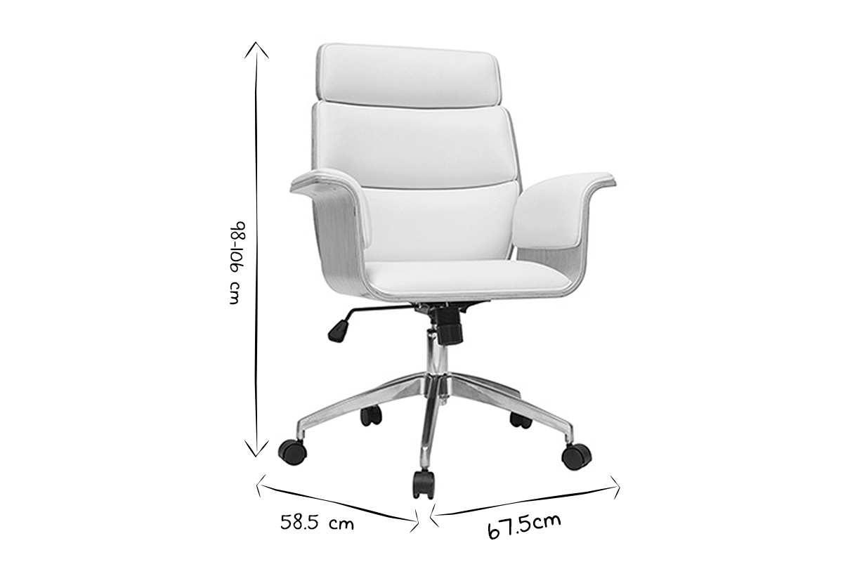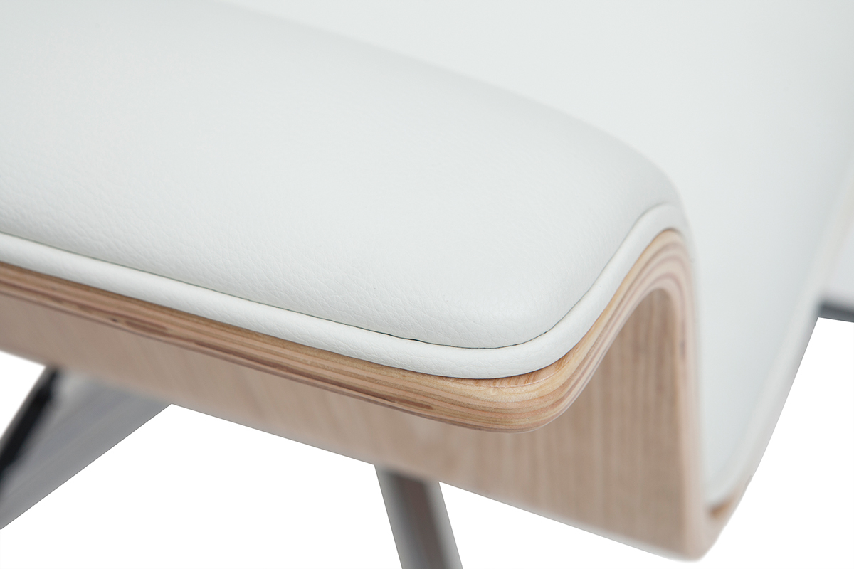 Une structure finition bois clair, une assise contrastante en polyuréthane blanc, des lignes tout en courbes... ce fauteuil de bureau moderne possède toutes les qualités d'une assise tendance. On apprécie particulièrement ses accoudoirs recourbés et son dossier rembourré qui donnent à l'ensemble un style unique.