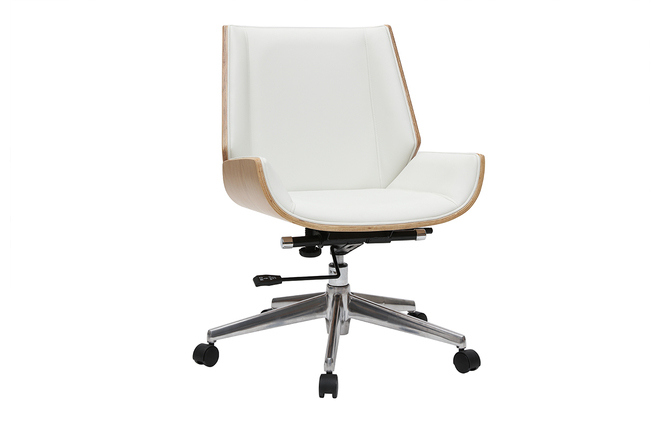 Ce joli fauteuil de bureau aux lignes modernes habillera parfaitement votre bureau d'inspiration scandinave ou contemporaine. Sa structure en bois clair apporte de la chaleur et de l'authenticité à votre coin bureau tandis que l'assise et le dossier en polyuréthane blanc rafraîchiront la pièce en apportant de la clarté.