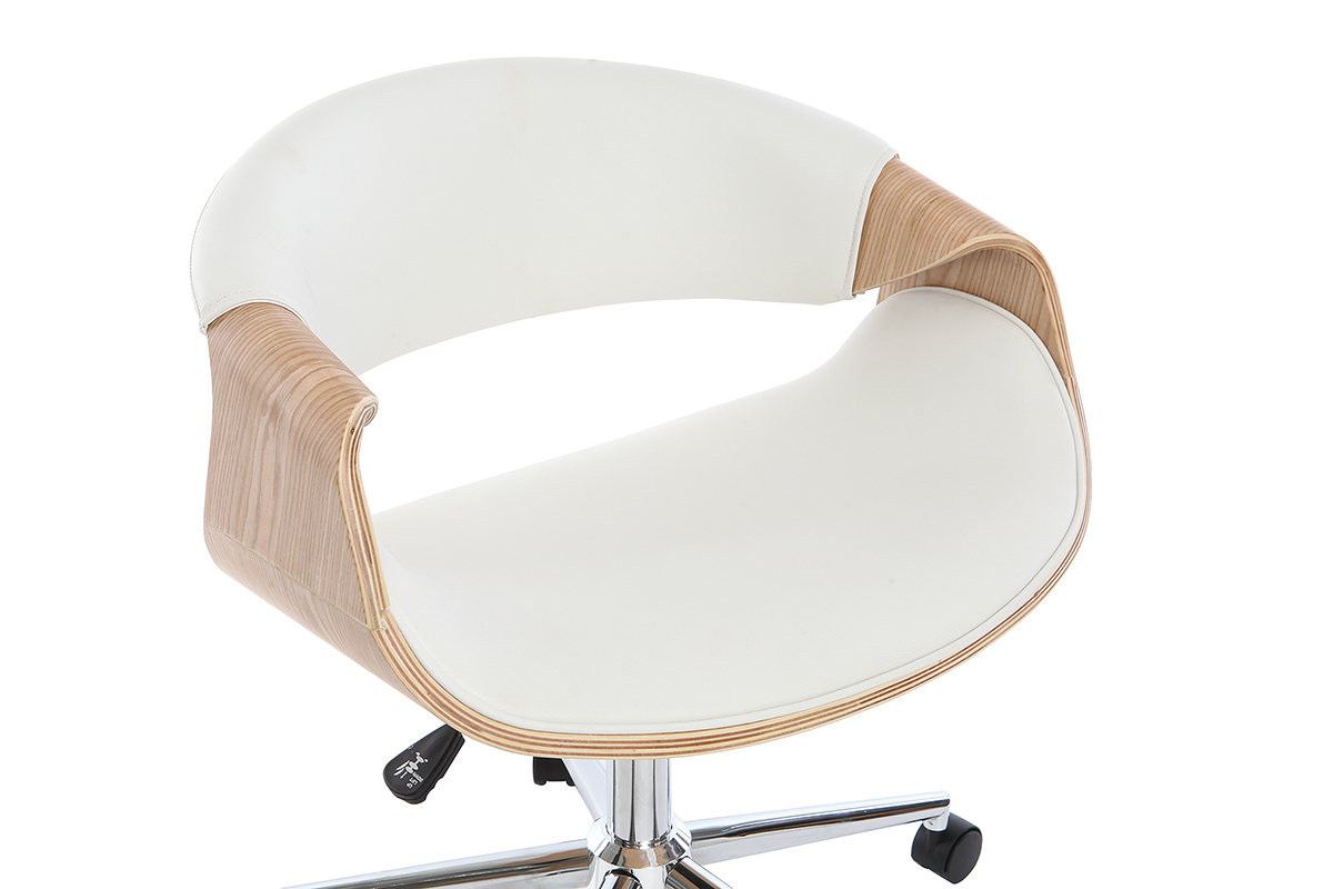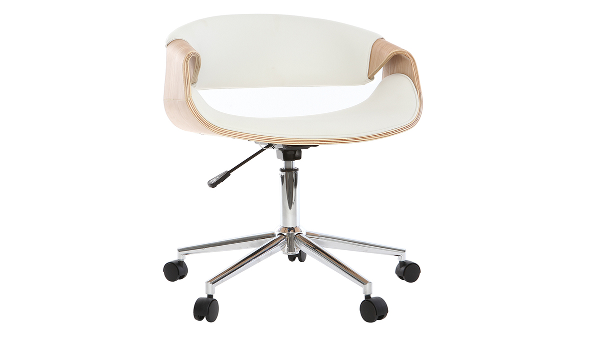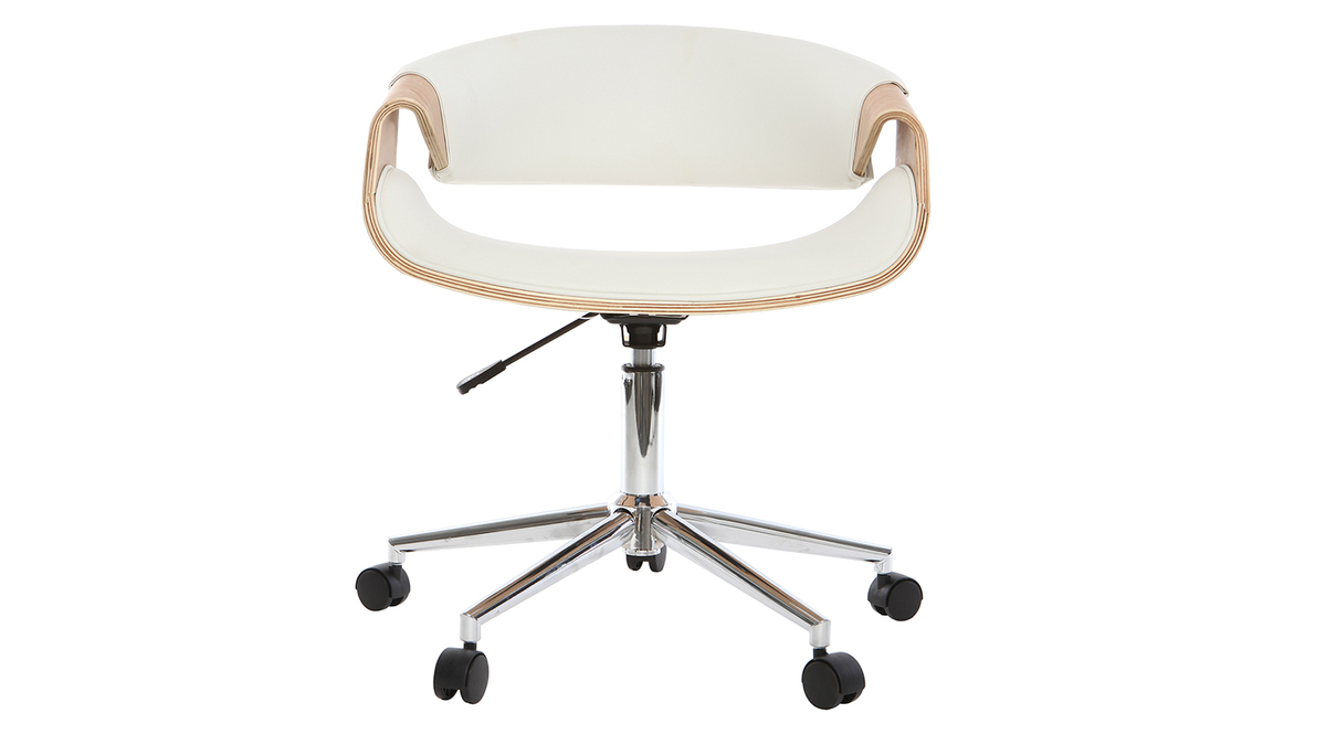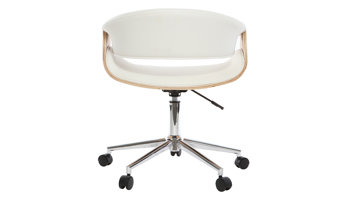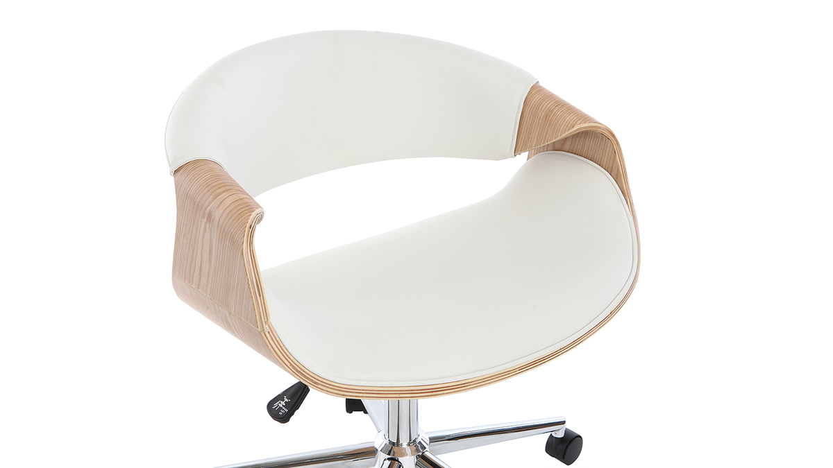 Le fauteuil de bureau ARAMIS mêle à la perfection le polyuréthane et le bois pour de beaux contrastes qui lui donnent un look vintage assumé très tendance. Associé à notre bureau NEW MAX, il apportera une touche contemporaine à votre bureau.