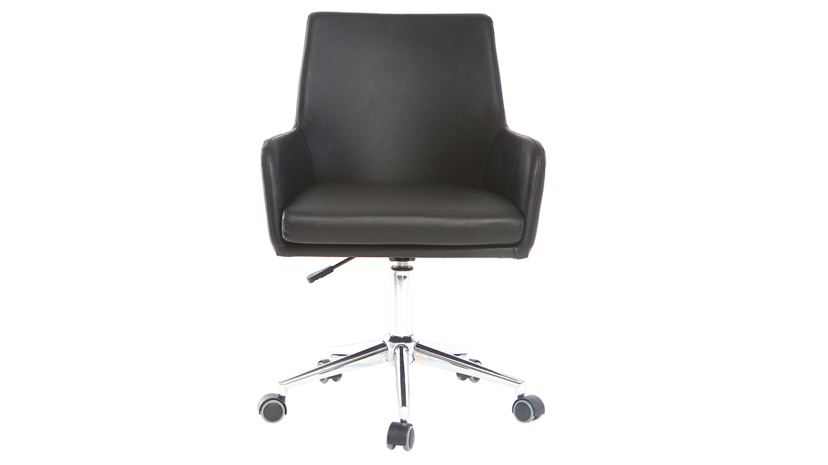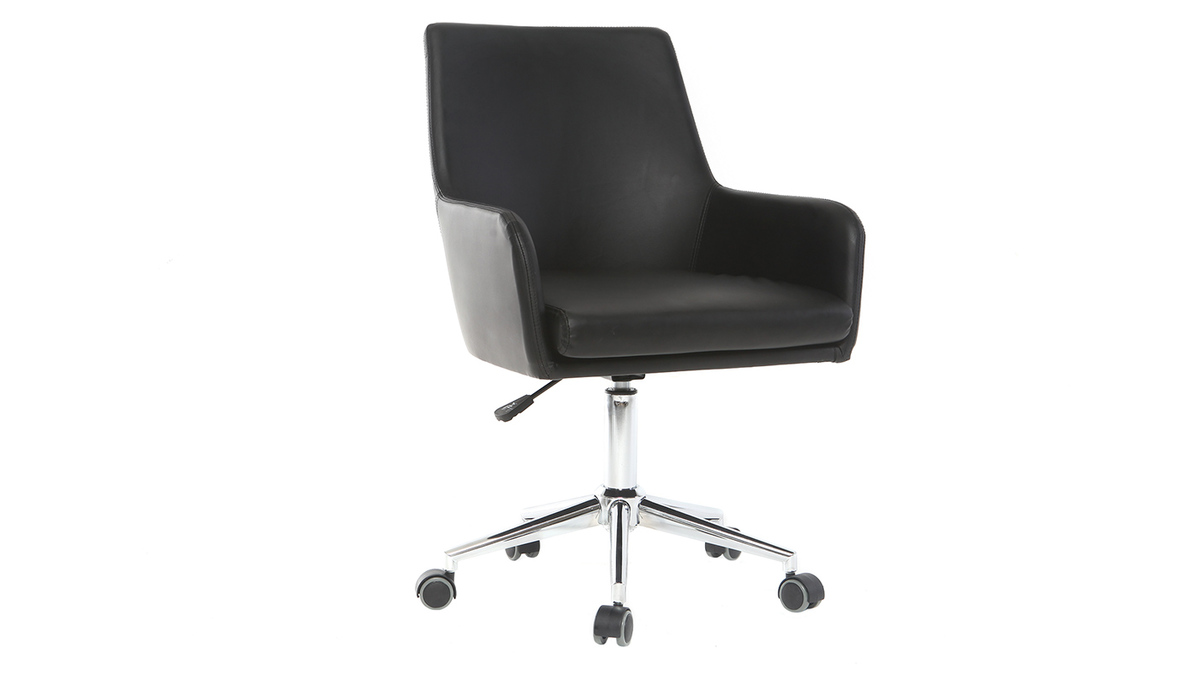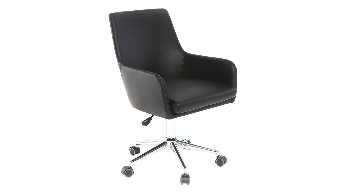 Avec sa forme moderne et son revêtement en polyuréthane noir, cette chaise de bureau apportera une touche déco à l'espace de travail. Grâce à son grand dossier, ses accoudoirs et son coussin d'assise d'une densité de 24 kg/m³, elle est adaptée à un usage quotidien et offre un très bon confort d'assise, idéal pour les longs moments passés derrière son bureau. Grâce à son pied réglable en hauteur, le modèle SHANA s'adapte à chaque utilisateur : son assise passe de 45 à 53 cm de haut en un clin d'oeil. Pour plus de praticité, ce fauteuil pivote et est équipé de 5 roulettes pour se déplacer aisément.