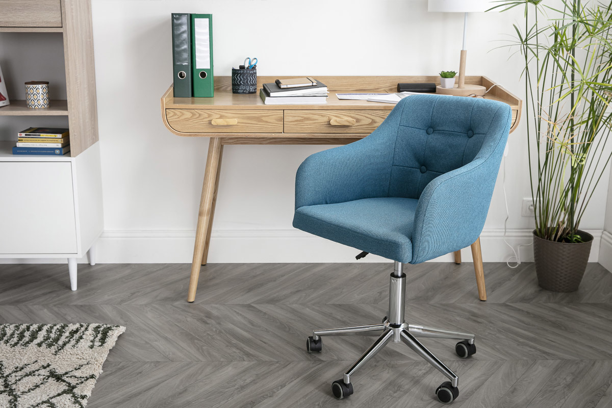 Esprit couture pour la chaise de bureau bleu canard BALTIK design et confortable !
