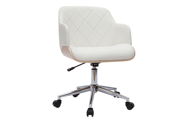 Cette chaise de bureau design arbore un joli jeu de matière en associant le polyuréthane blanc au bois clair courbé, faisant de lui une pièce d'allure au design moderne. Tons clairs et courbes arrondies se marient à ravir pour former un look tendance. Avec SANDRO, chaque détail compte ! De l'assise constrante au joli motif cousu sur le dossier, tout a été soigneusement choisi pour créer un ensemble déco. Pour une ambiance harmonieuse, on associe cette chaise de bureau à roulettes à un bureau au style contemporain.