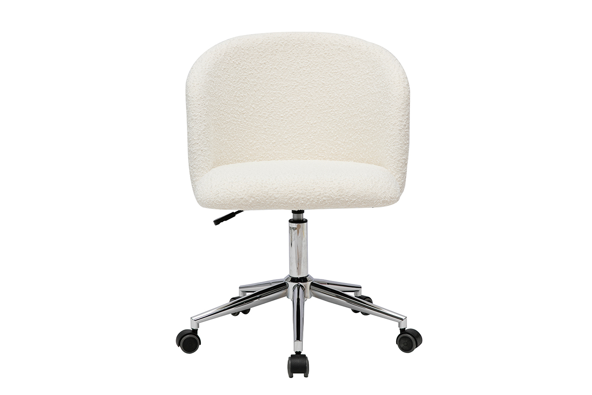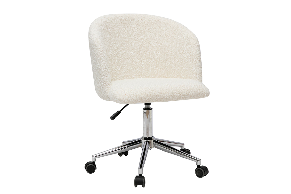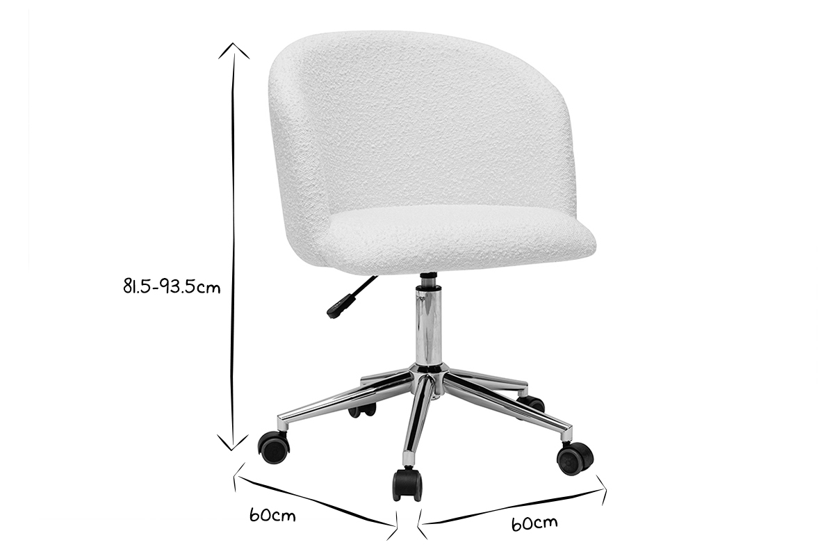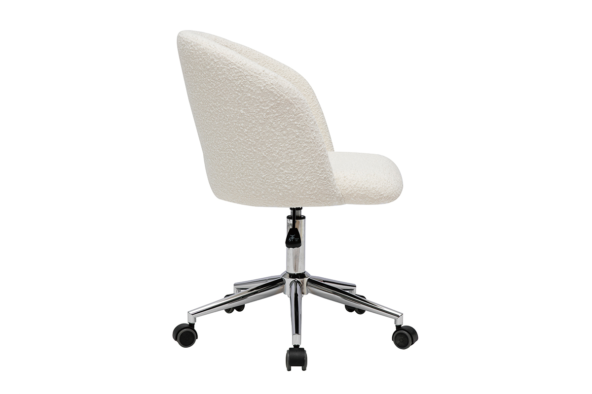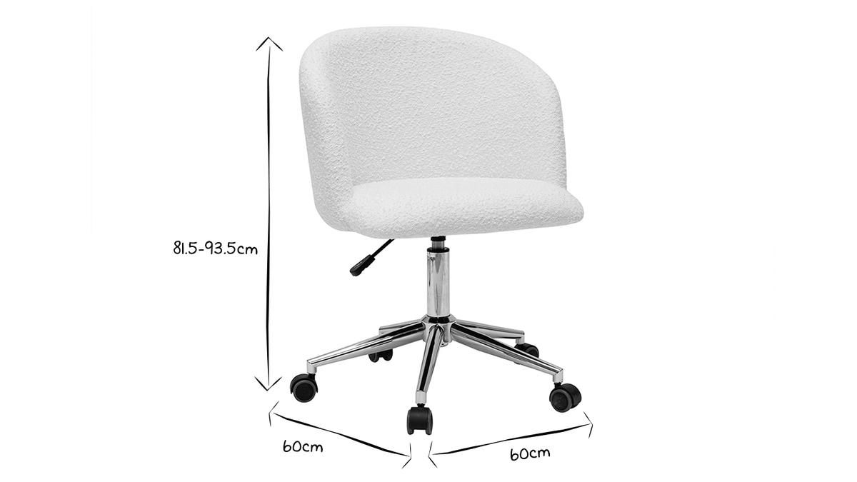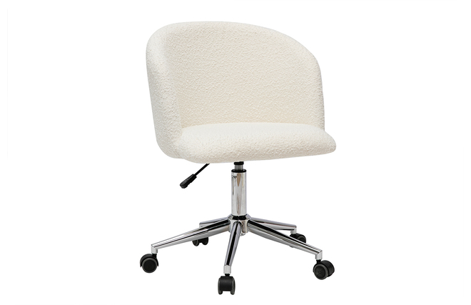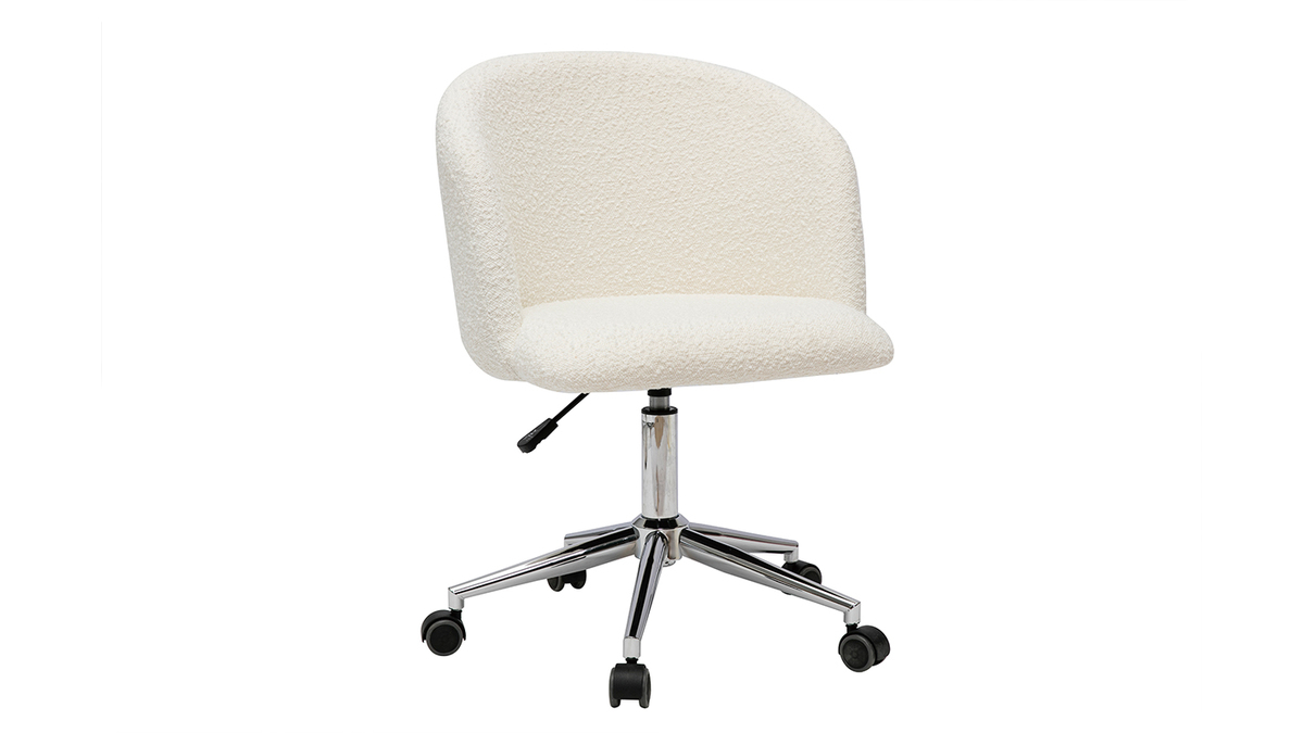 Elégant et fonctionnel, le fauteuil de bureau bouclette VANITY offre un grand confort d'utilisation. Equipé d'un système de hauteur réglable, il permet de choisir sa hauteur d'assise en fonction de son plan de travail ou de son activité. Il permet aussi de se mouvoir facilement dans l'espace grâce à son assise pivotante à 360° et son piètement en acier chromé muni de cinq roulettes en nylon.