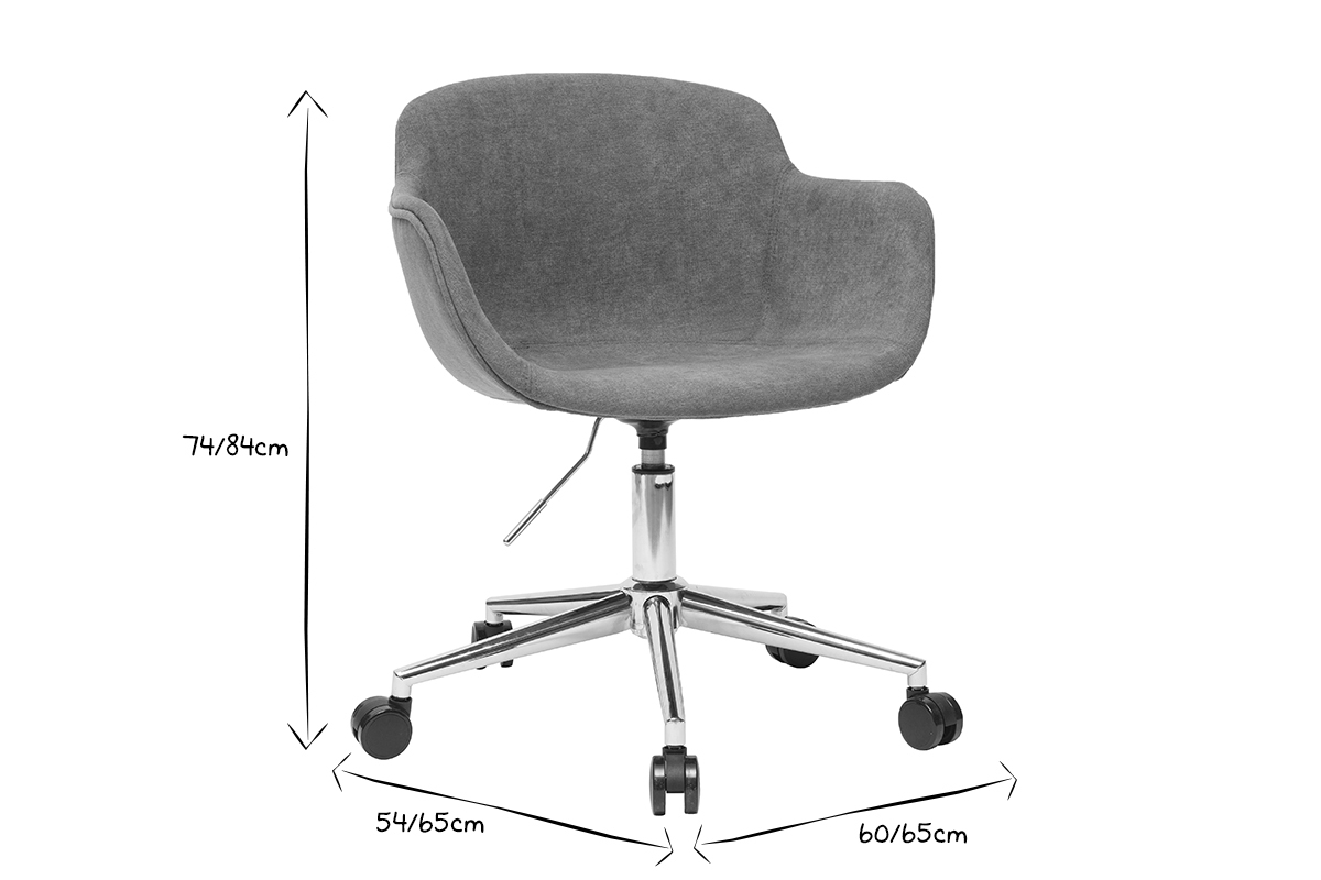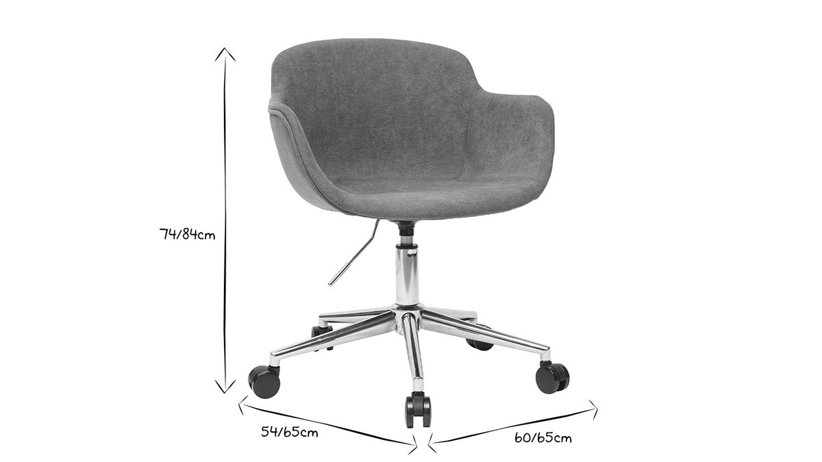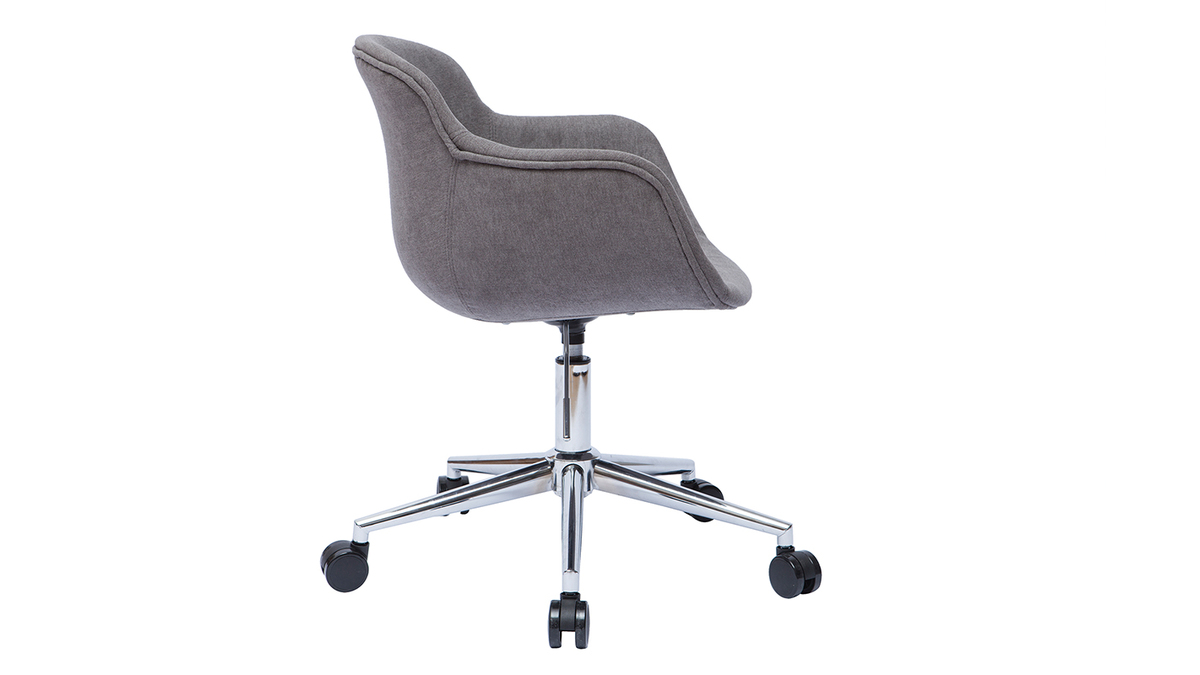 Avec sa coque enveloppante, ce fauteuil de bureau rembourré (densité de la mousse 25 kg/m3) assure un confort optimal. On aime son design tout en courbes et la douceur de son revêtement, un tissu effet velours gris (100% polyester). Ses larges accoudoirs ont été pensés pour offrir toujours plus de confort.