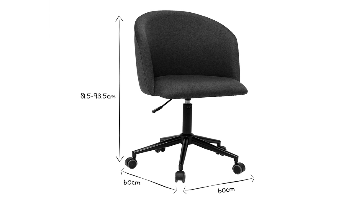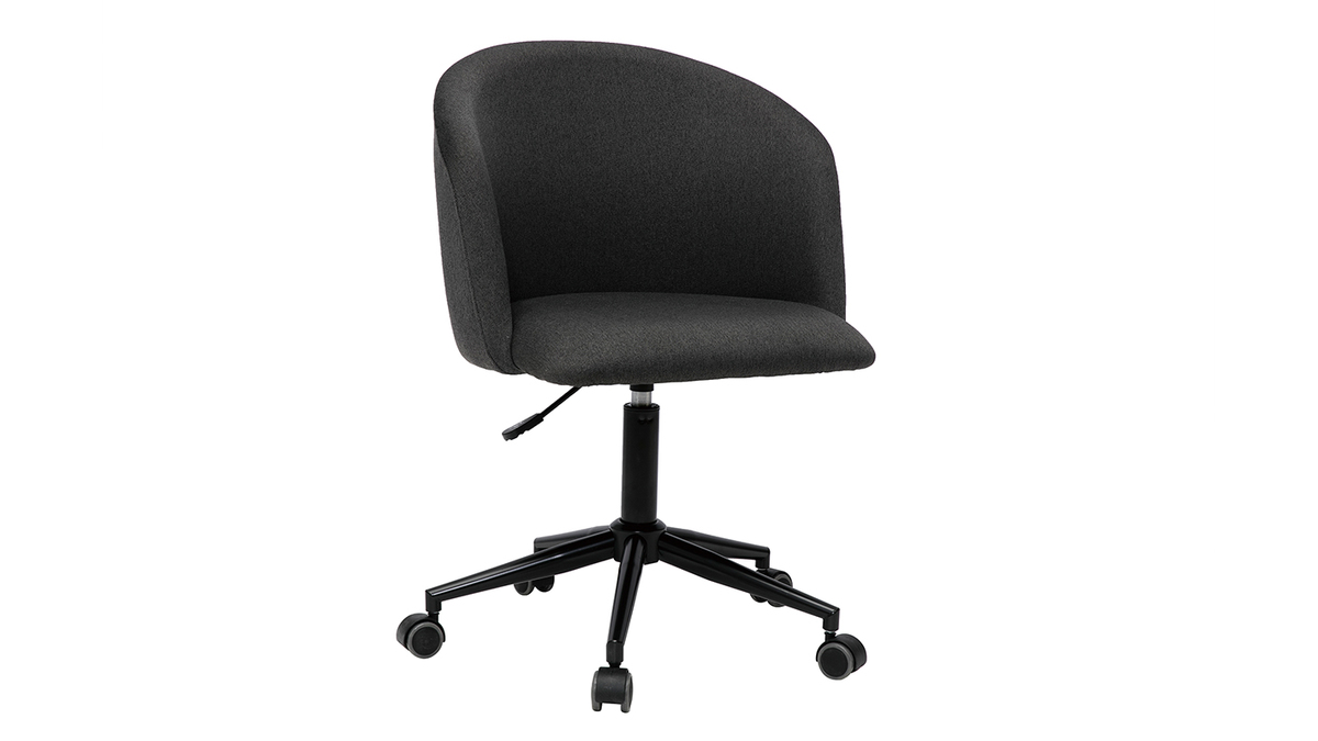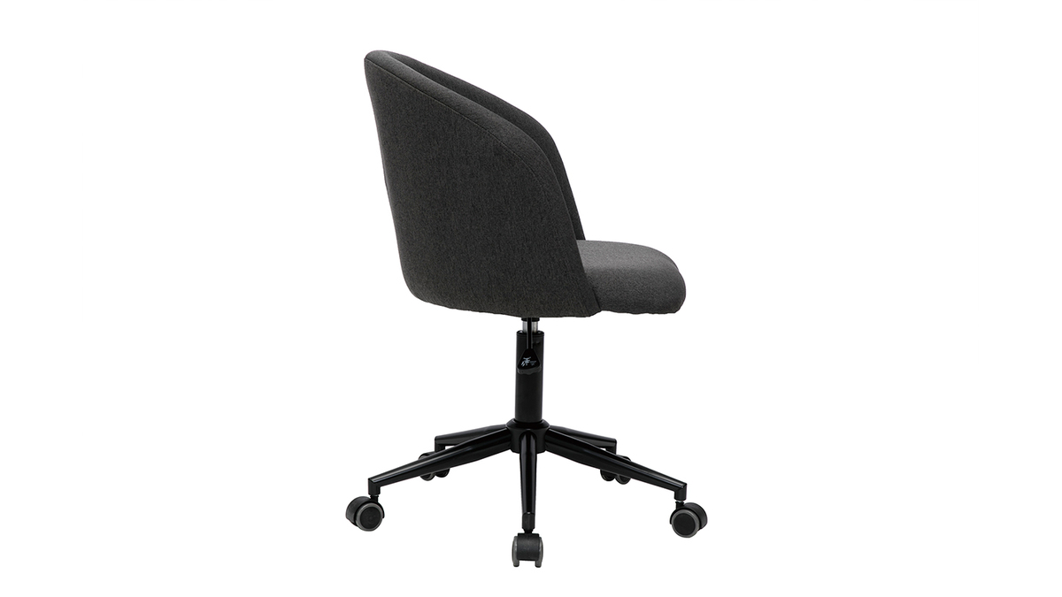 Avec son langage tout en rondeur et son rembourrage généreux (densité de la mousse 25 kg/m3), ce fauteuil de bureau offre un excellent confort d'assise. Le dossier forme un véritable cocon, une enveloppe protectrice propice à la concentration et à la création. L'ensemble est recouvert d'un magnifique tissu gris foncé (100% polyester) au toucher ultra doux.