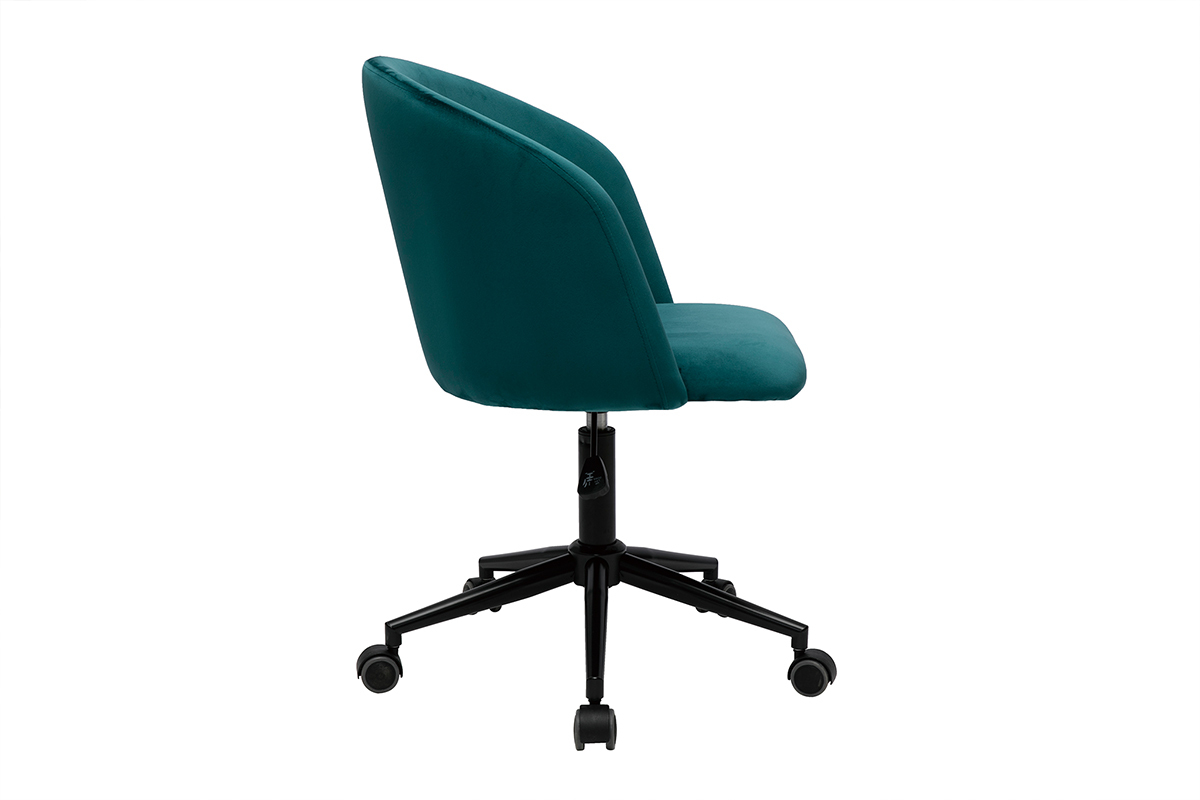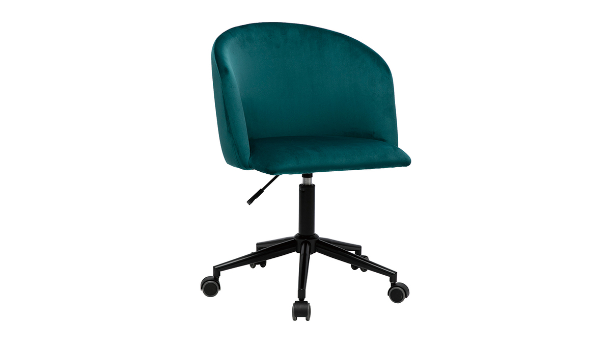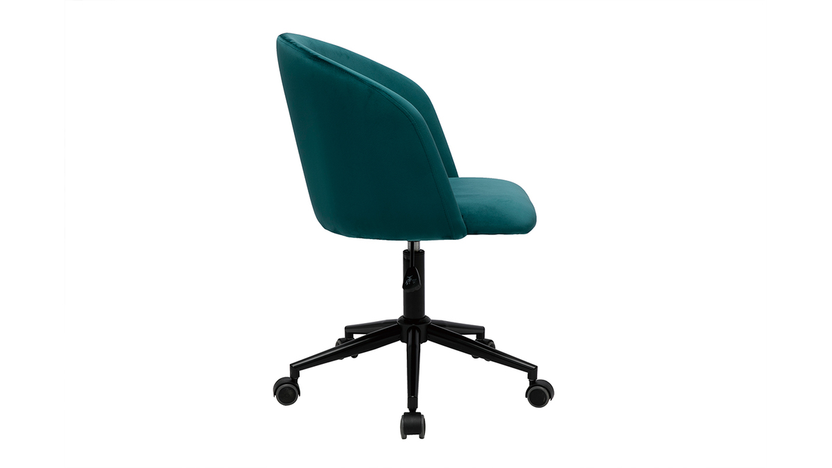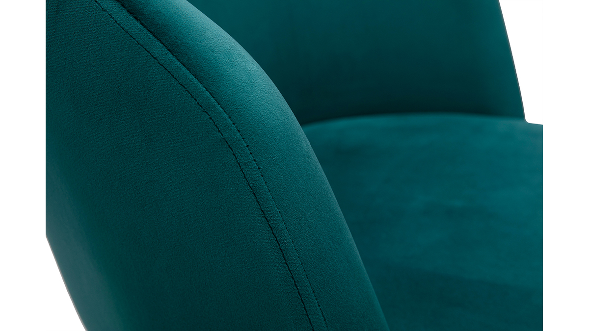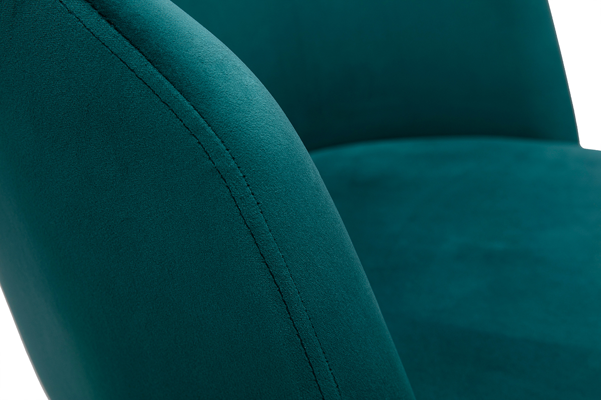 Avec son langage tout en rondeur et son rembourrage généreux (densité de la mousse 25 kg/m3), ce fauteuil de bureau offre un excellent confort d'assise. Le dossier forme un véritable cocon, une enveloppe protectrice propice à la concentration et à la création. L'ensemble est recouvert d'un magnifique tissu velours bleu pétrole (100% polyester) au toucher doux et soyeux.