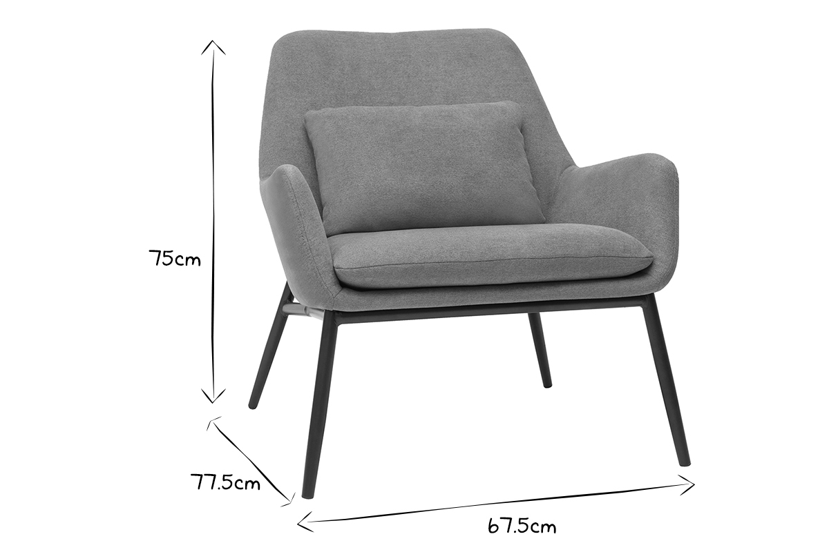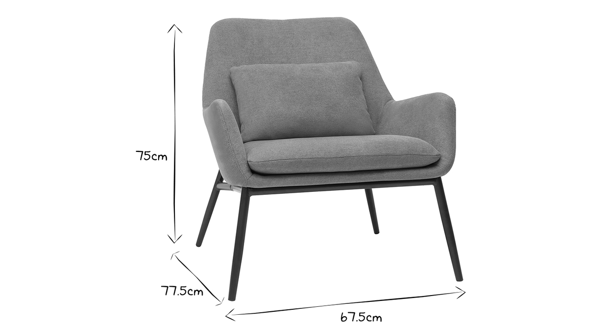 Avec sa forme englobante, son petit coussin d'appoint et son rembourrage généreux (densité assise et dossier : 25 kg/m³ - épaisseur d'assise 2 cm), ce grand fauteuil moderne (L67.5 x P77.5 x H75 cm) offre un véritable confort.