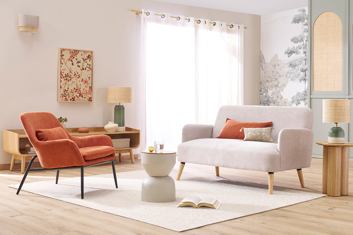 Pour se créer un espace détente intimiste, on l'imagine totalement associé à une table d'appoint contemporaine ainsi qu'à un beau lampadaire pour une lumière tamisée. Il ne vous reste plus qu'à prendre place sur ce confortable fauteuil design terre brulée.