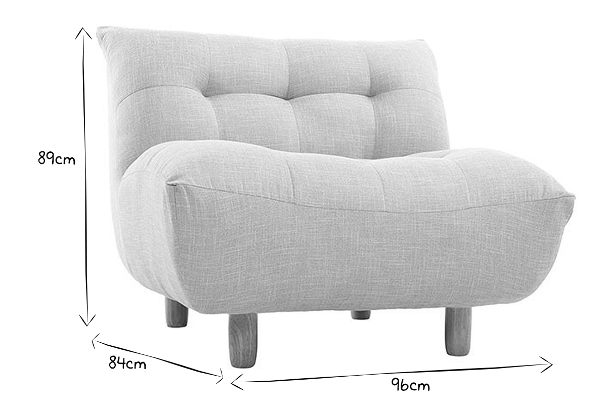 Le fauteuil scandinave YUMI propose une assise de 96 cm de largeur sur 84 de profondeur, soit plus grand que les fauteuils traditionnels. Un bon compromis pour les petits espaces ne pouvant accueillir de canapé.