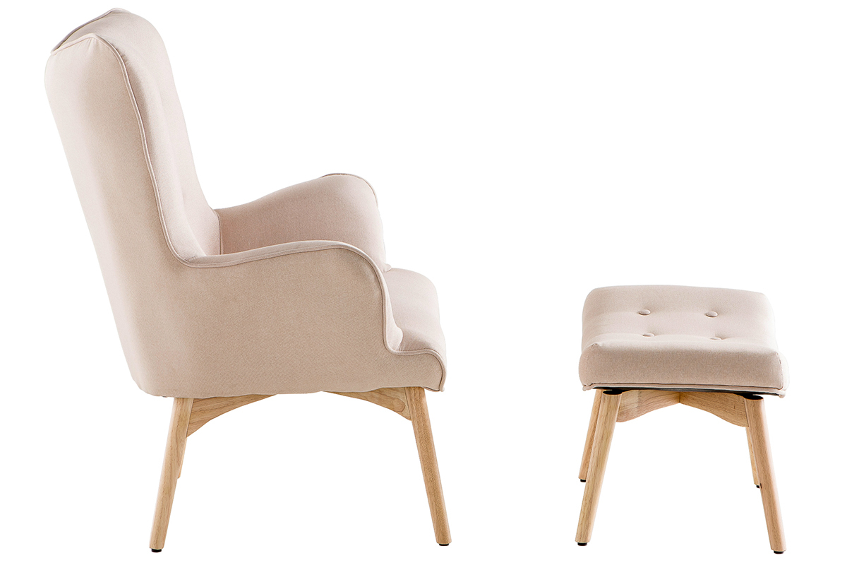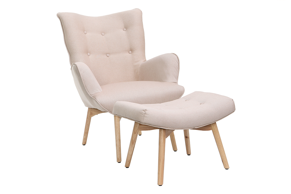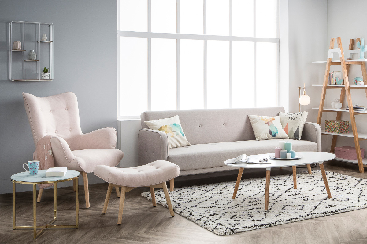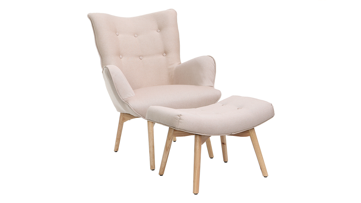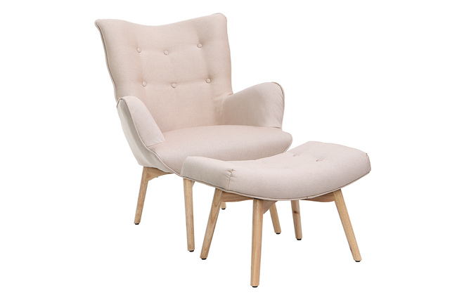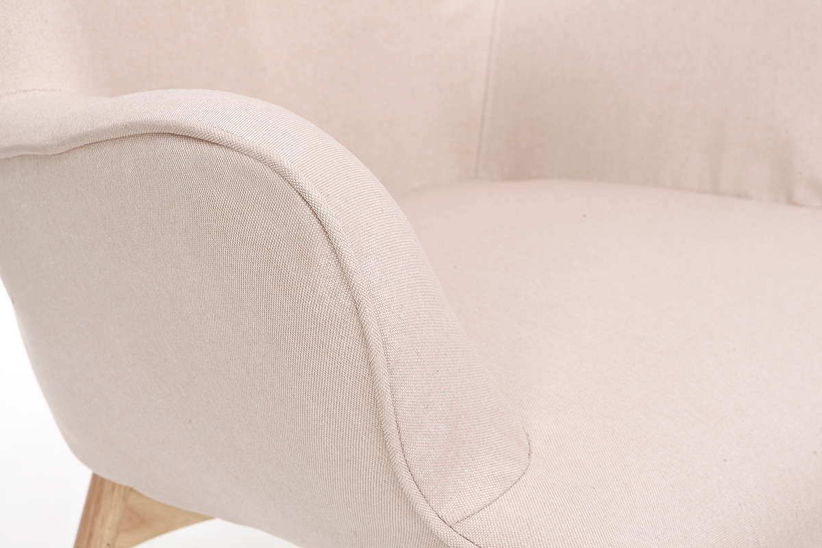 Avec son haut dossier, le fauteuil scandinave et son repose pied rose et bois clair BRISTOL sont des véritables atouts confort. Son haut dossier permet d'être tout à fait enveloppé par le fauteuil.