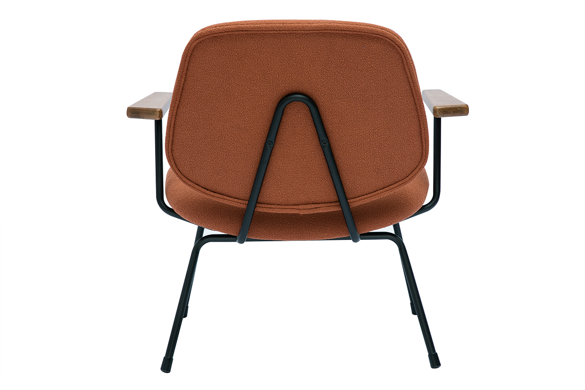 Fauteuil design en tissu effet laine bouclée terre brûlée, métal noir et bois foncé BARNET livré prêt à monter.