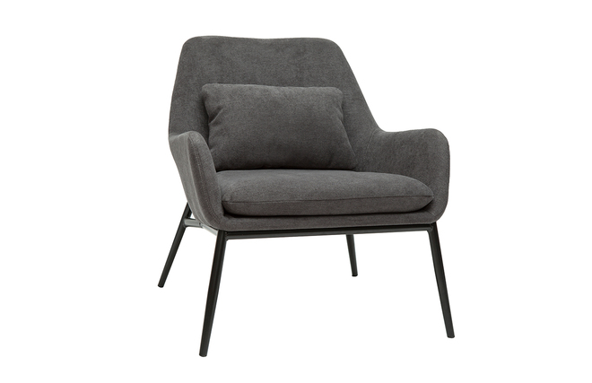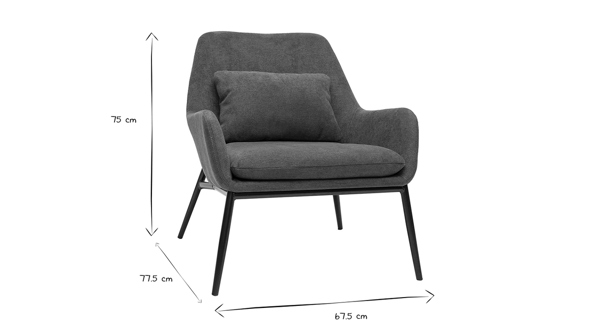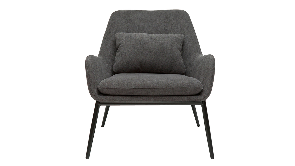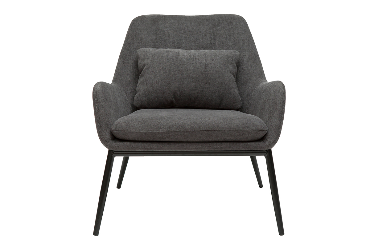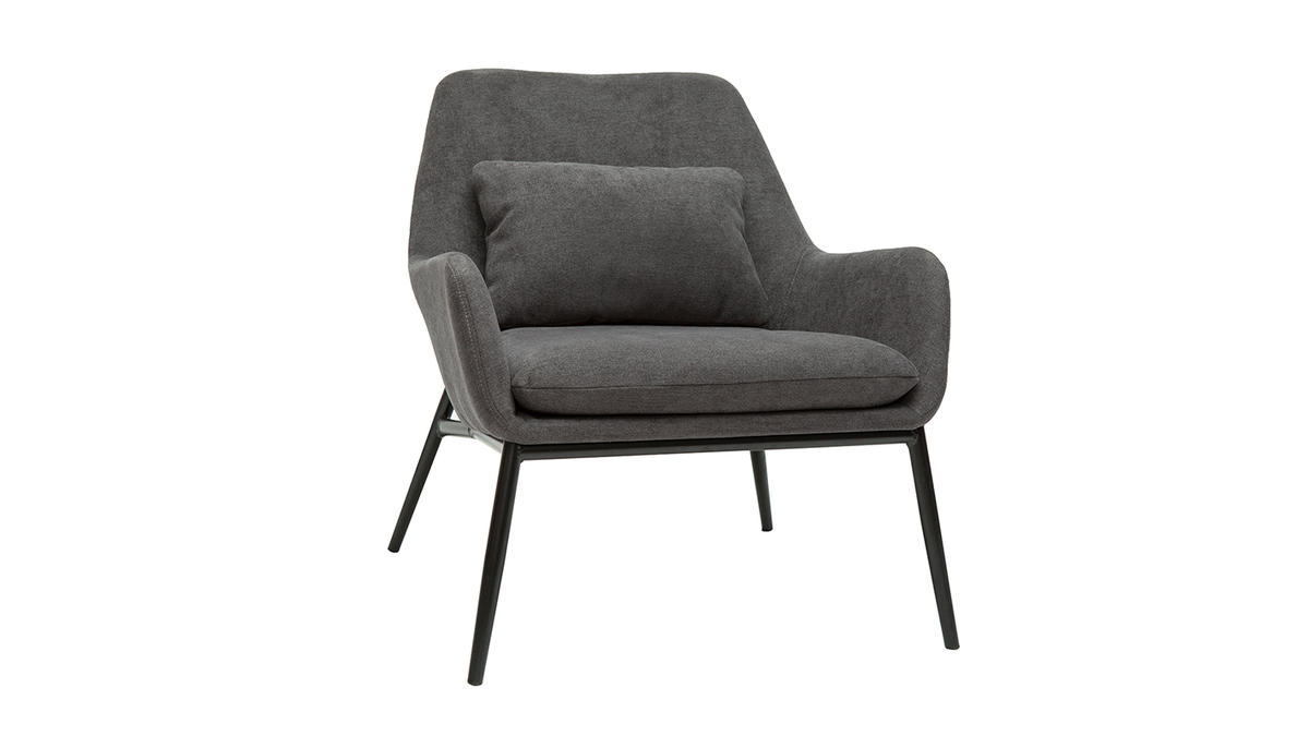 Fauteuil design en tissu effet velours gris foncé et métal noir livré prêt à monter.