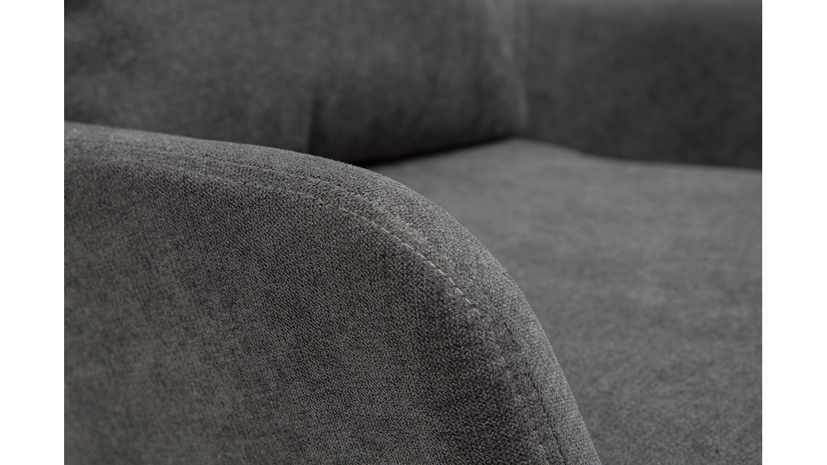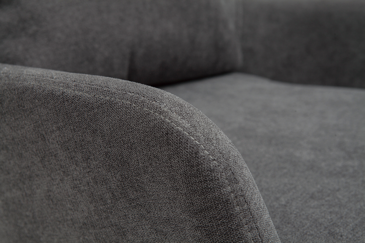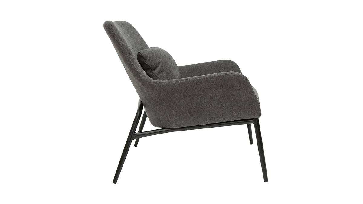 Tout a été pensé pour faire du fauteuil MAXINE un élément déco moderne et tendance. Sa belle ligne contemporaine est joliment mise en valeur par un revêtement en tissu effet velours gris anthracite et des pieds en métal noir. Véritable pièce de déco, ce fauteuil design en tissu gris foncé et métal noir respecte parfaitement les envies des intérieurs dans l'air du temps. Teinte sobre et silhouette tendance forment le combo gagnant !