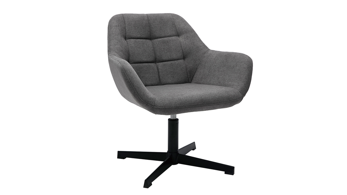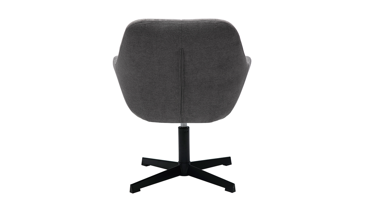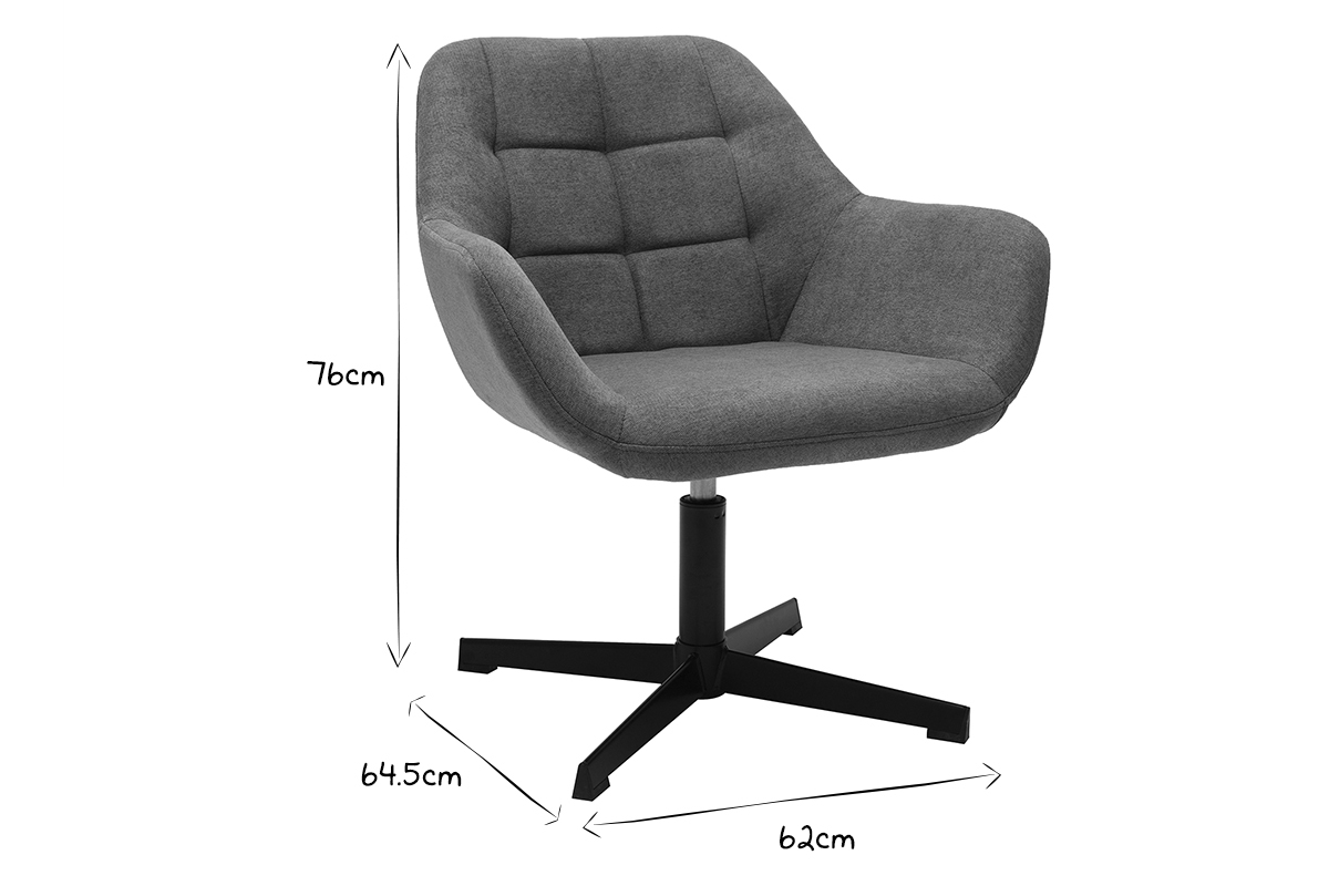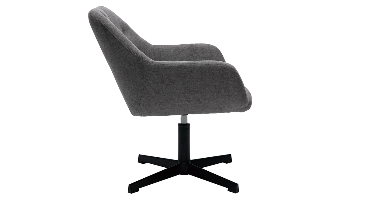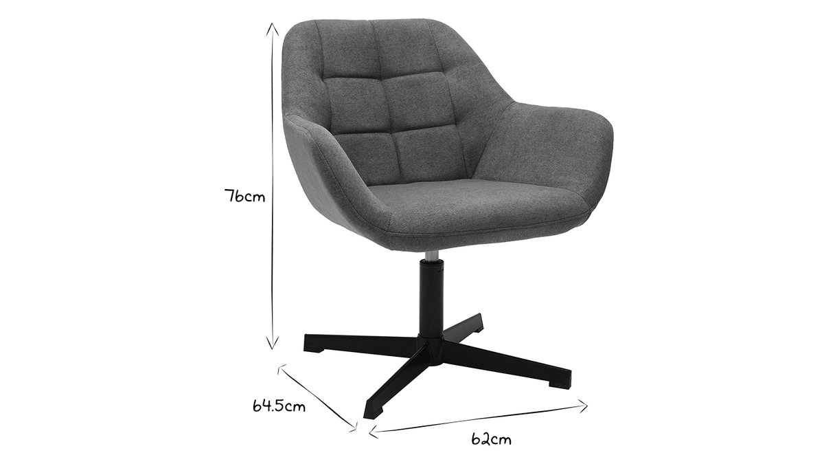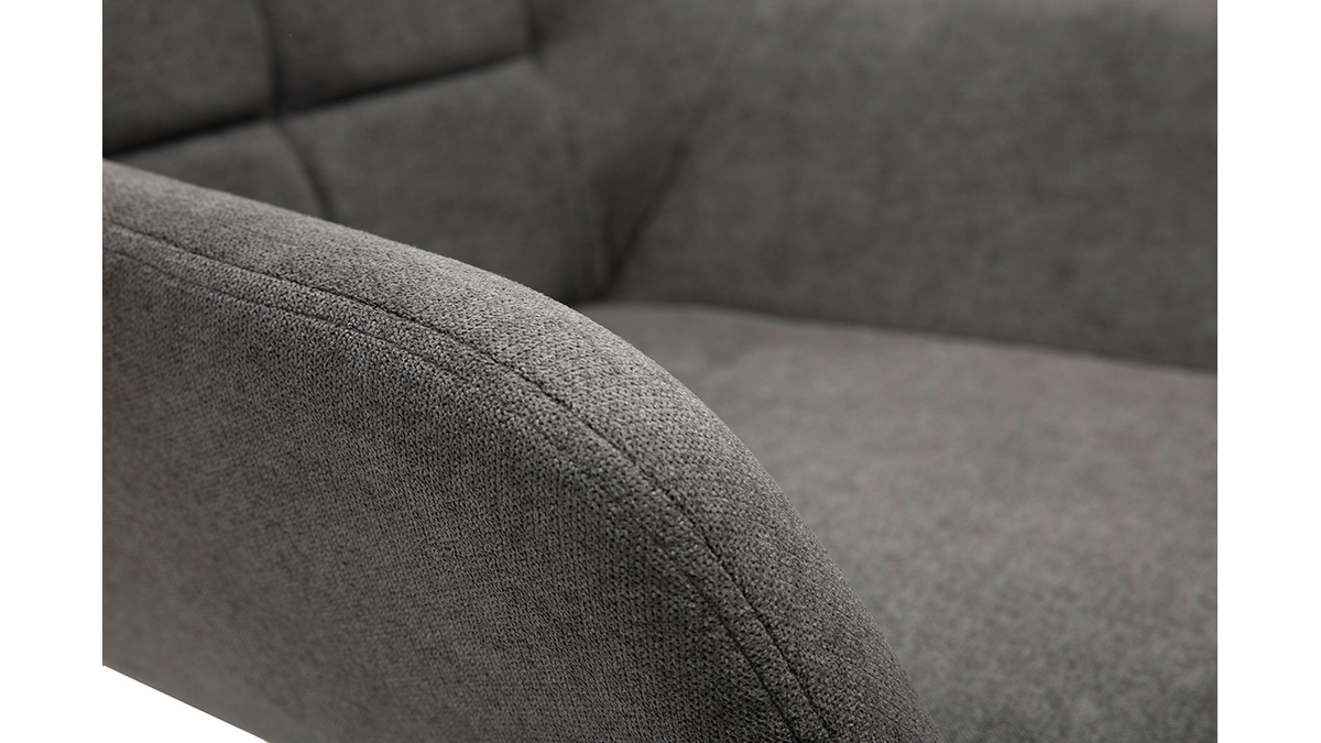 Pièce déco hyer design, ce fauteuil aux beaux volumes se distingue par son siège enveloppant en tissu effet velours gris et son piètement stable en métal noir. Détail de style : il affiche un bel effet capitonné au niveau de son dossier !