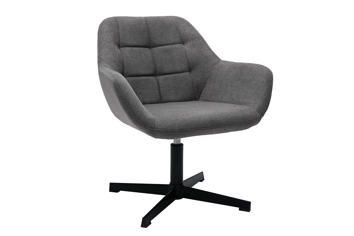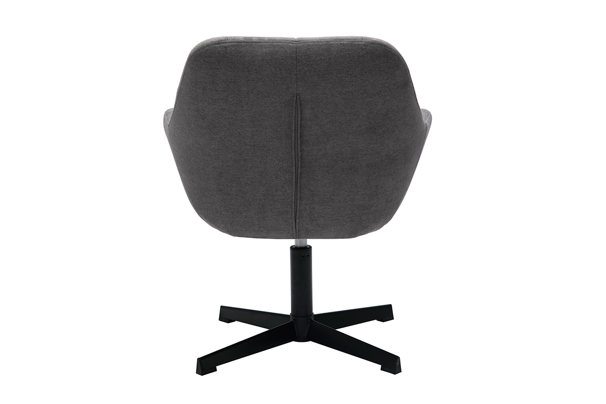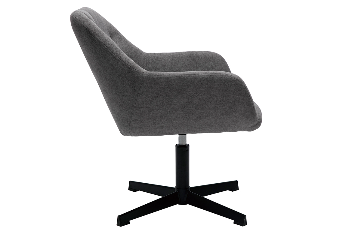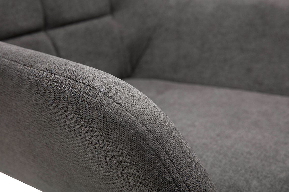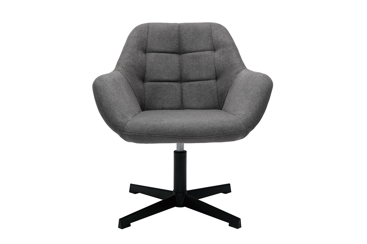 Pièce déco hyer design, ce fauteuil aux beaux volumes se distingue par son siège enveloppant en tissu effet velours gris et son piètement stable en métal noir. Détail de style : il affiche un bel effet capitonné au niveau de son dossier !