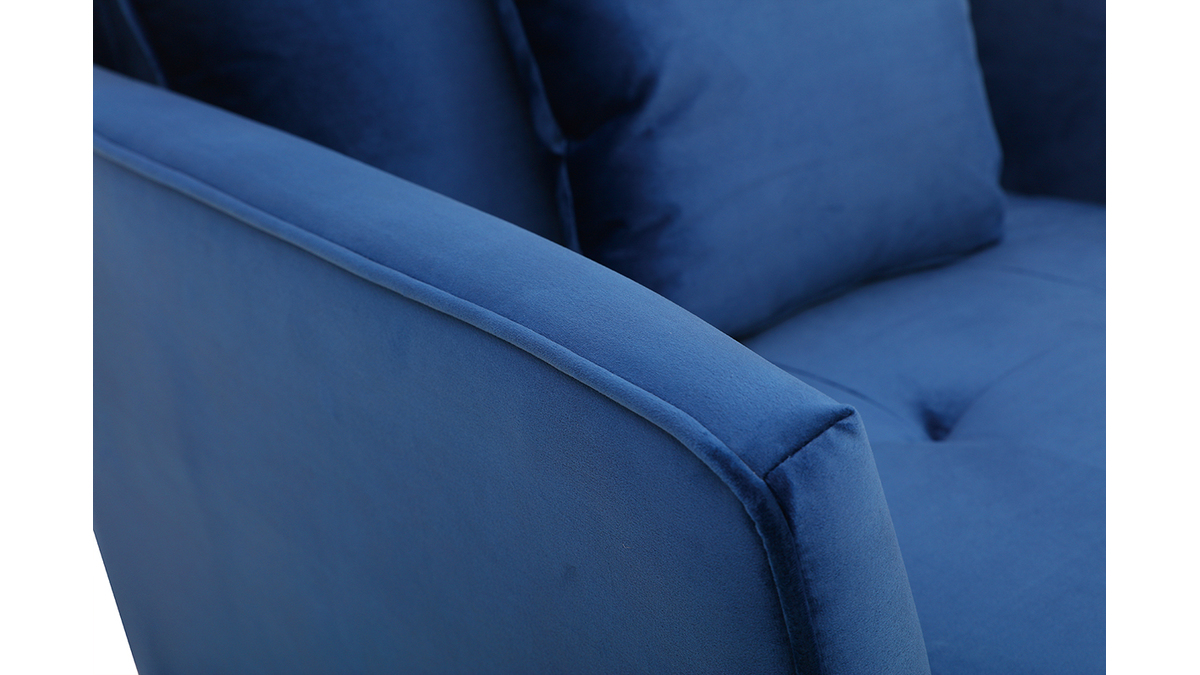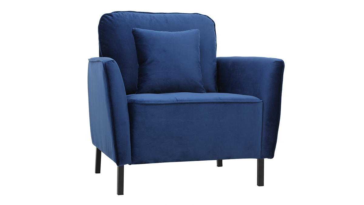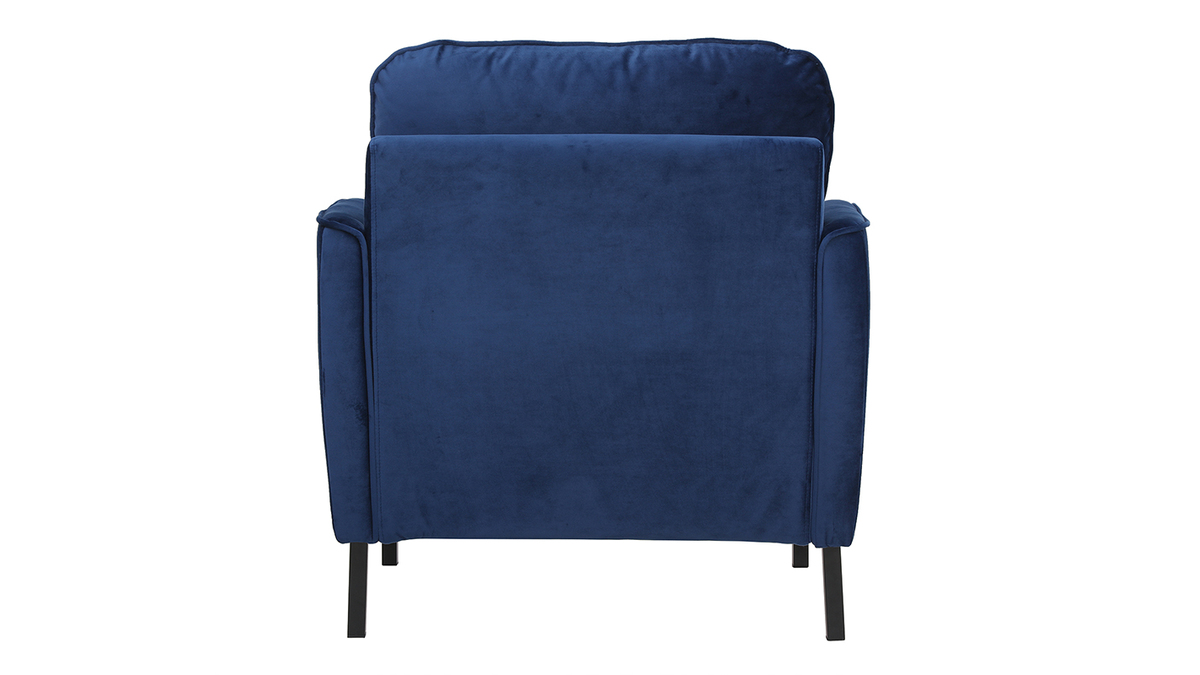Recouvert d'un beau tissu velours, le fauteuil design BEKA est une assise élégante. Sa forme tout en rondeurs et son assise capitonnée rappellent ce qui fait le charme du style classique. Le velours bleu et le piètement en métal modernisent l'ensemble faisant de ce fauteuil une assise originale.