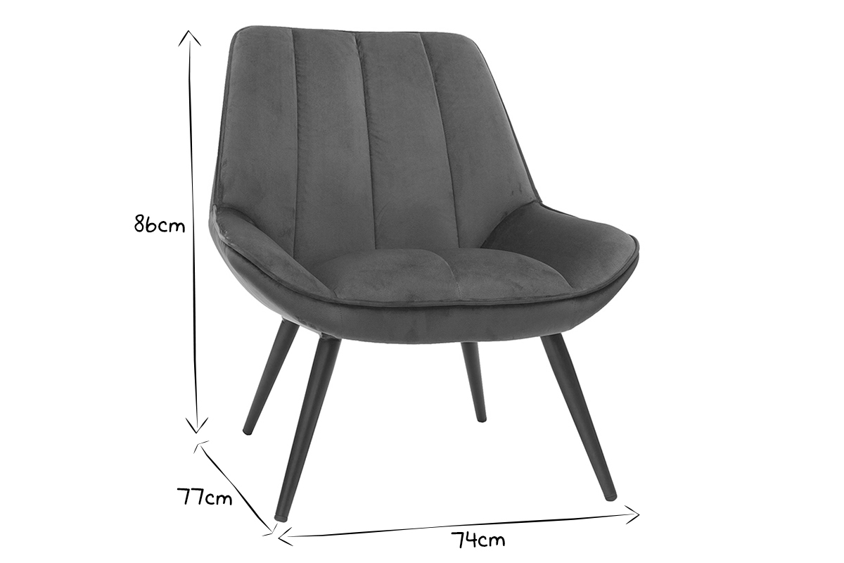 Fauteuil en tissu et métal livré prêt à monter. Pieds à fixer.