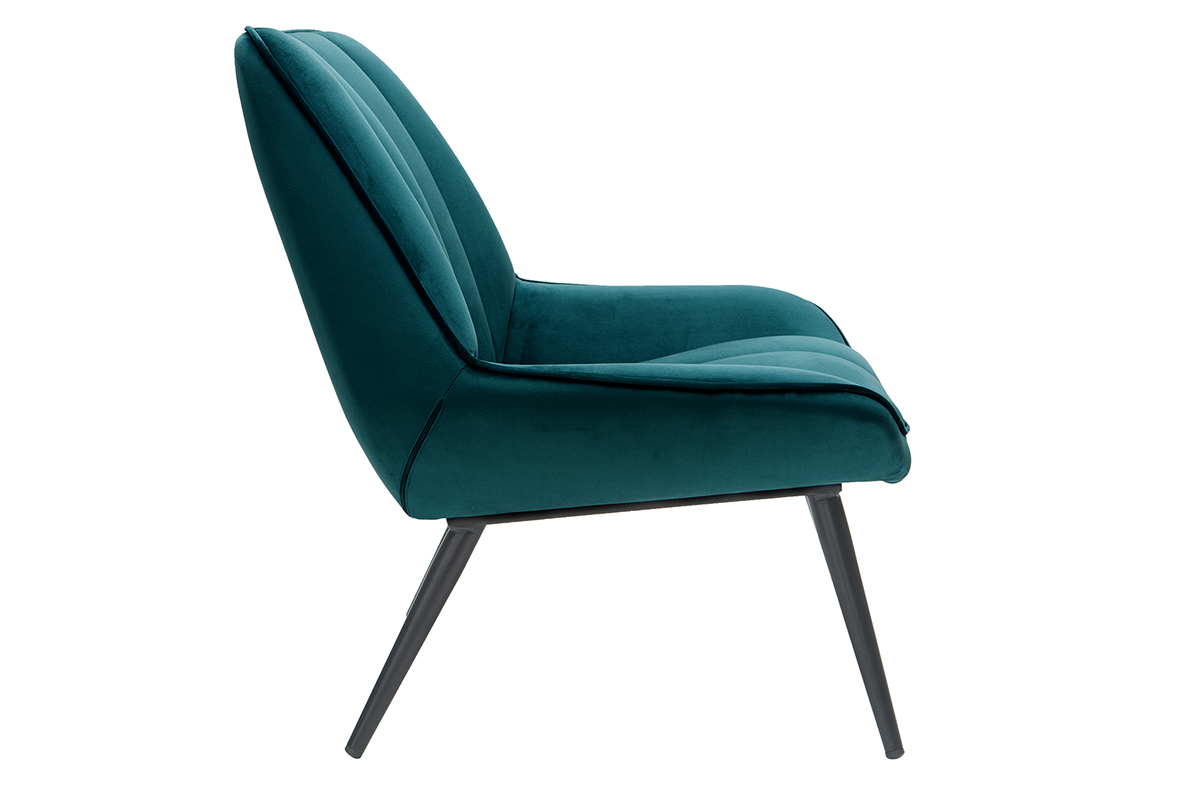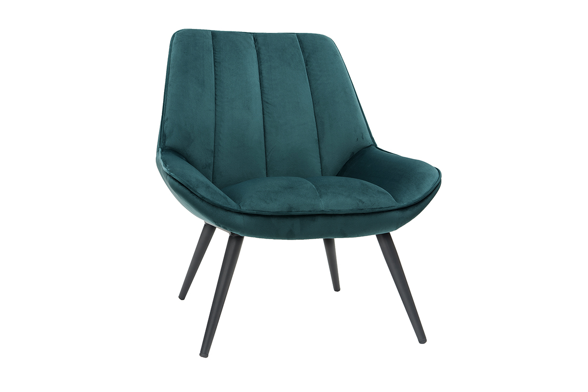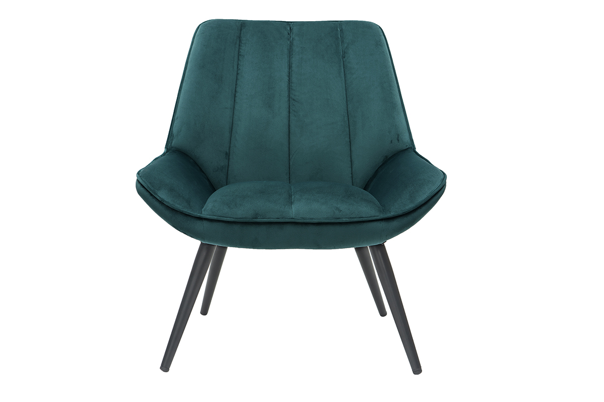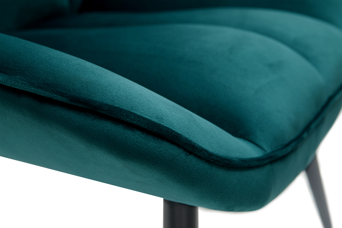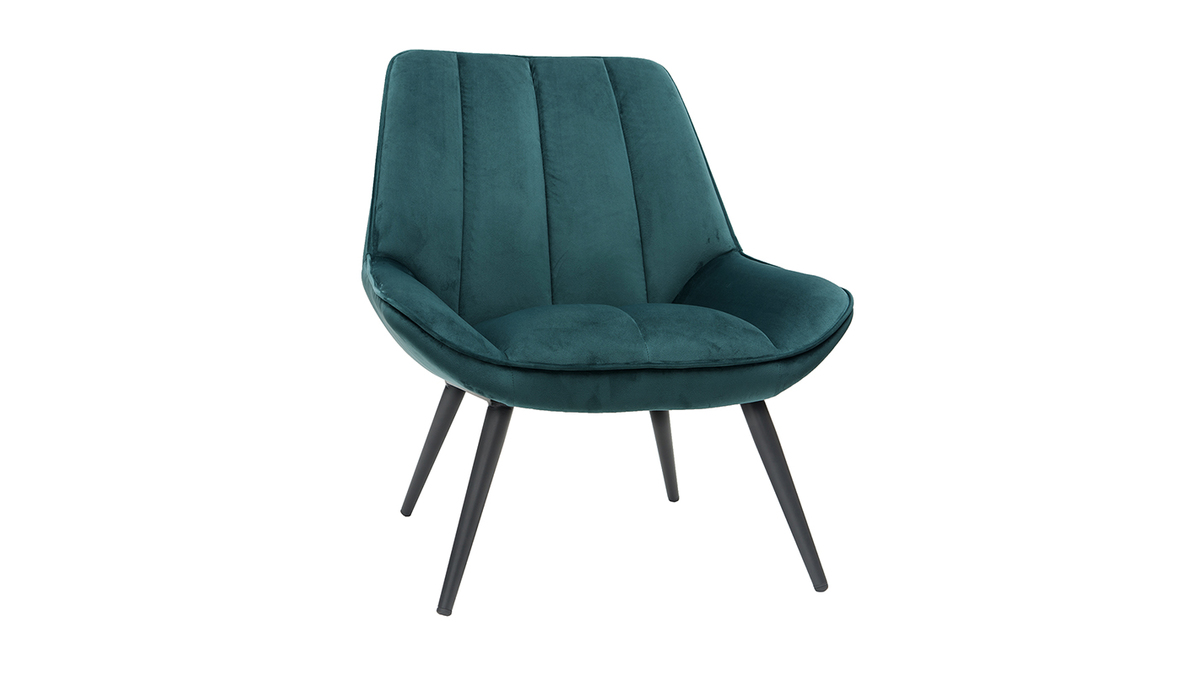 On aime les courbes douces, le piètement fuselé et le revêtement en velours de ce fauteuil bleu pétrole. Cette association lui donne du charme et un style unique tout en élégance et en délicatesse. Jolie pièce design, le fauteuil BILLIE offre confort et convivialité. Sa teinte intemporelle associée à une forme enveloppante trouvera facilement sa place dans un salon cocooning. Un piètement en métal noir complète le tout. Il apporte une belle touche de légèreté à une assise au volume massif. Un bel équilibre qui fait tout le charme de ce fauteuil design.
