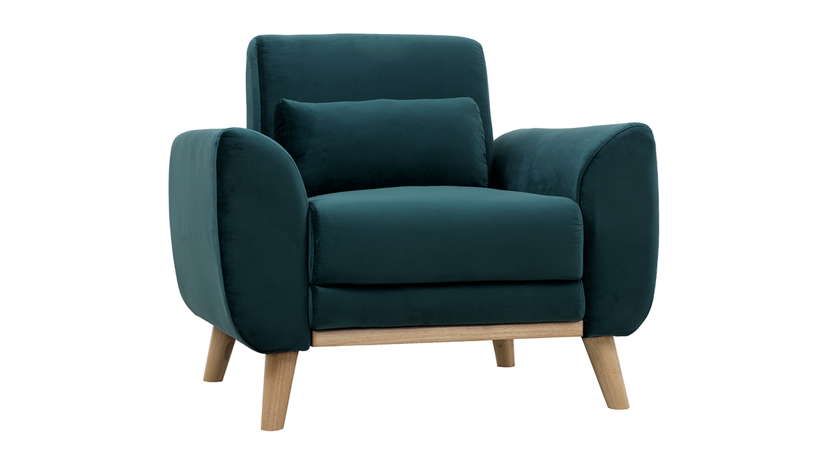 EKTOR est un siège accueillant aux formes voluptueuses sublimées par des matériaux tendance. Il associe une assise généreuse revêtue d'un tissu en velours bleu pétrole à un piètement en bois massif. Son beau volume et son coloris profond en font un siège qui ne passe pas inaperçu. L'aspect doux et luxueux du revêtement en velours donne à l'ensemble un style chic qu'on adore. EKTOR est une pièce déco à part entière, conçue pour être un élément central du salon.