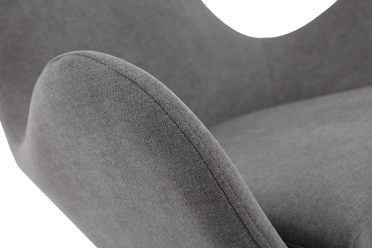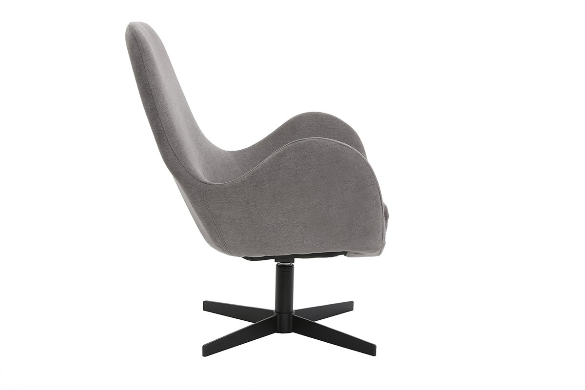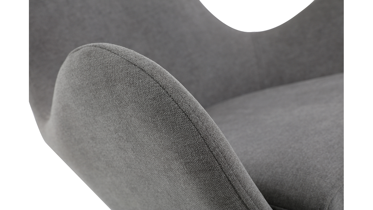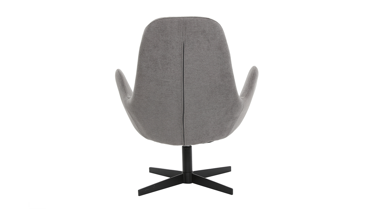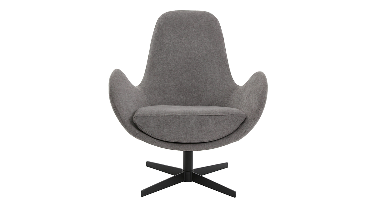 C'est sa forme audacieuse qui interpelle en premier. Ses accoudoirs incurvés, son dossier tout en courbe, son piètement en étoile, chaque élément a été travaillé pour faire de l'ensemble une véritable pièce design. Ses rondeurs et son coussin d'assise nous invitent ensuite à la détente. En s'asseyant, on découvre un fauteuil confortable... et pivotant ! On apprécie de pouvoir se tourner vers ses invités, puis de pouvoir s'orienter vers sa télévision afin de profiter ensemble d'une soirée film.