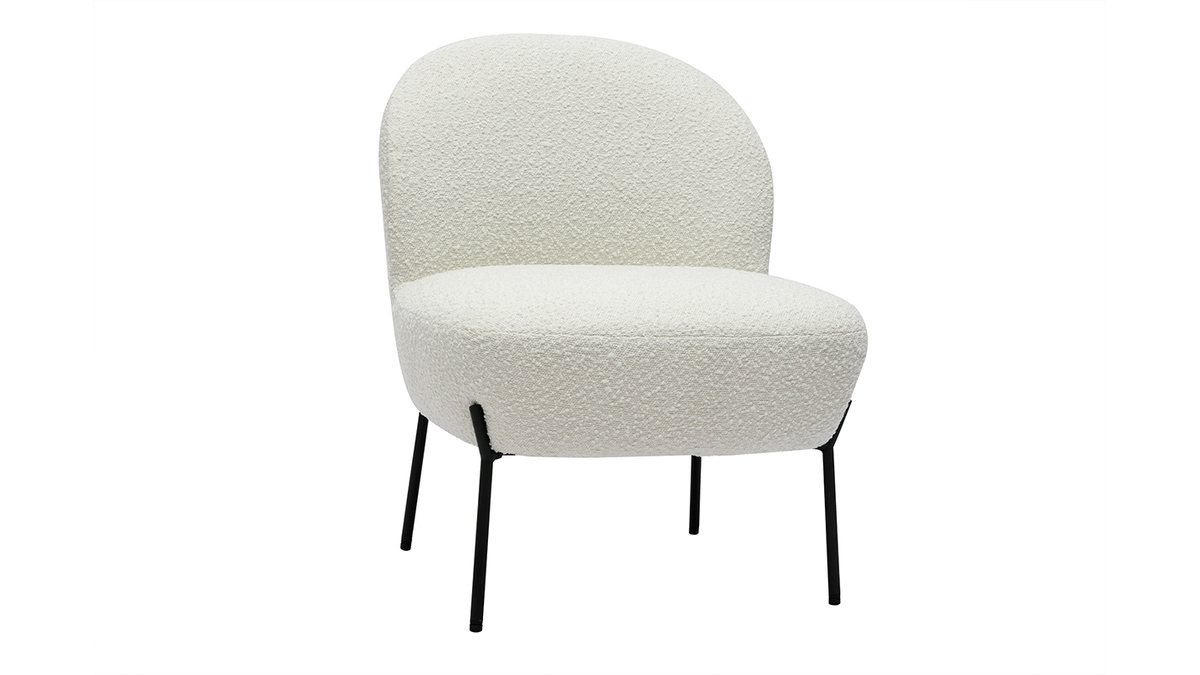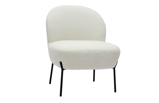 Pour un ensemble harmonieux, associez ce fauteuil moderne en tissu bouclette et métal noir à des meubles de rangement dont le design est inspiré de la tendance organique. Résultat du plus bel effet garanti !