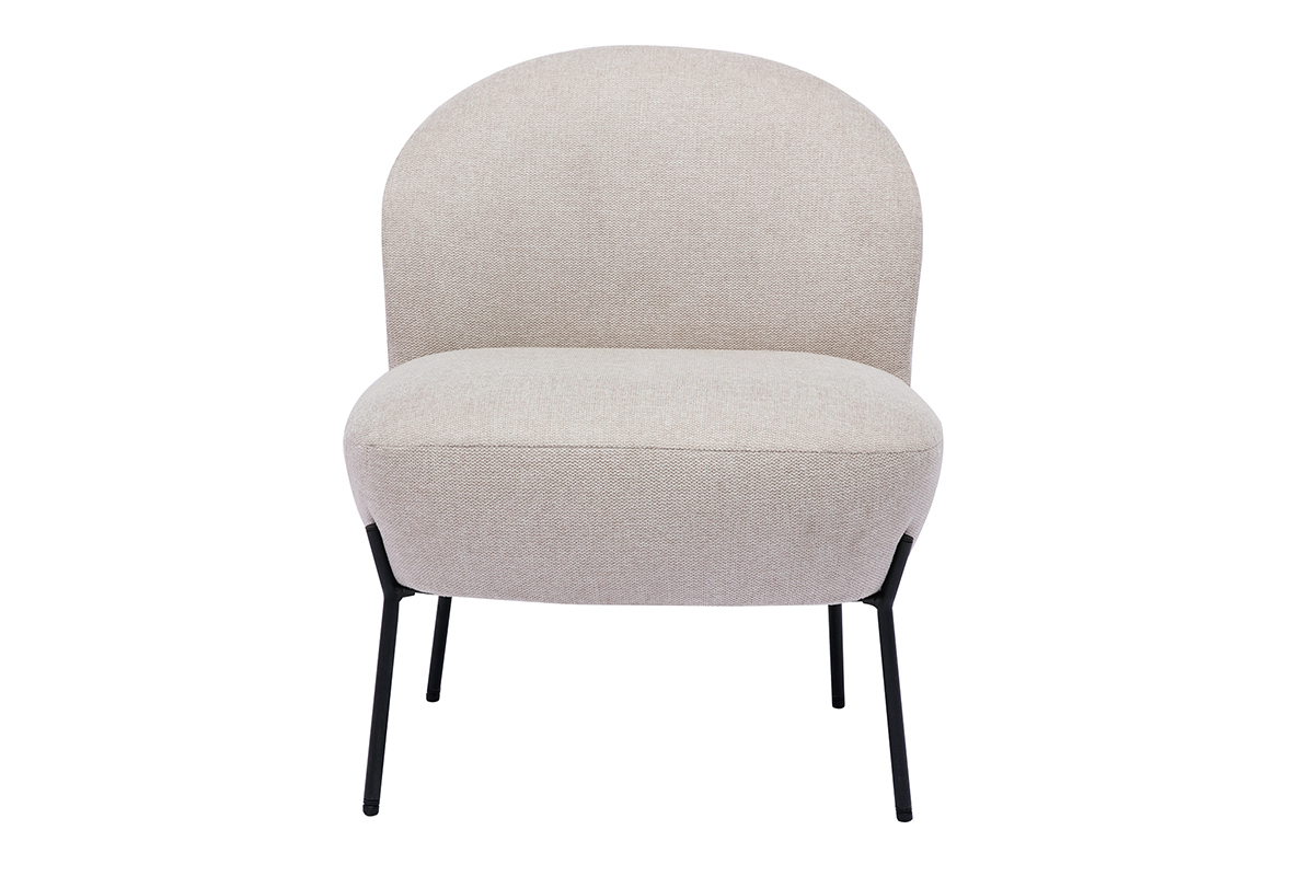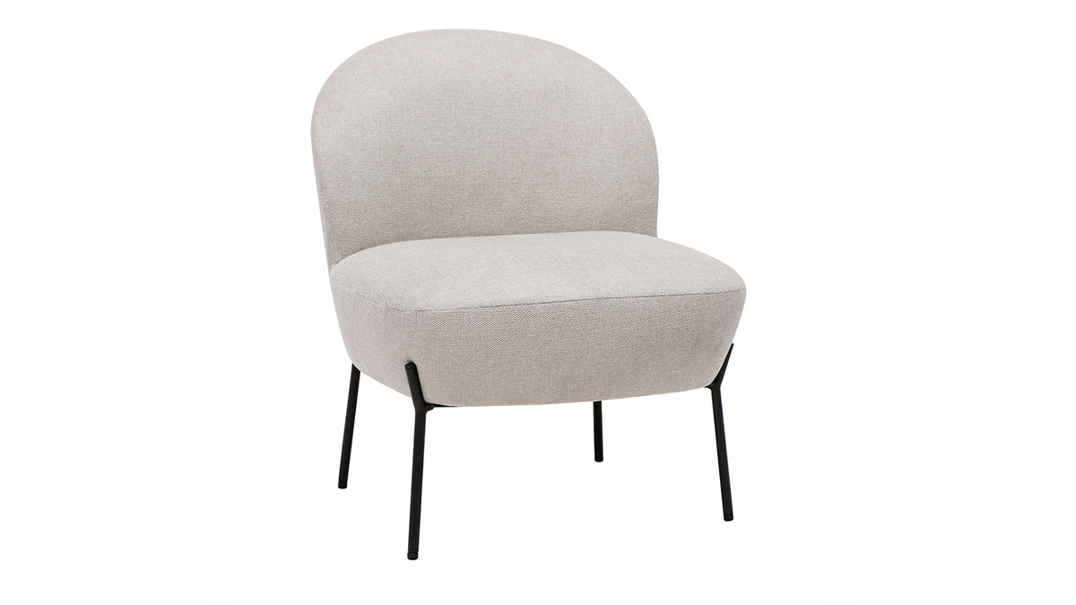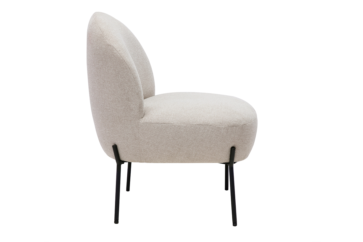 Pour un ensemble harmonieux, associez ce fauteuil moderne en tissu effet velours texturé beige et métal noir à des meubles de rangement dont le design est inspiré de la tendance organique. Résultat du plus bel effet garanti !
