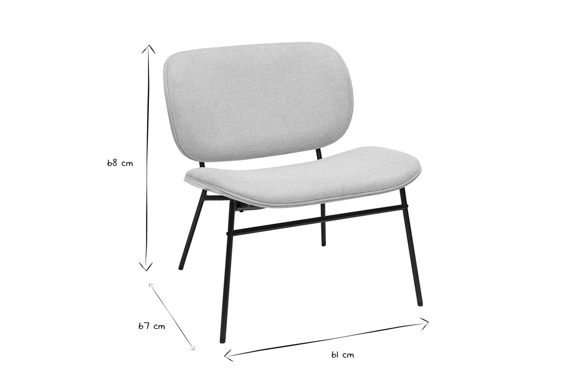 Le dossier légèrement incliné et l’assise rembourrée d’une densité de 24kg/m3 offrent un confort optimal pour vos moments de détente. Sa silhouette basse et son design minimaliste en font un fauteuil aussi fonctionnel qu’élégant, parfait pour créer une ambiance cosy sans surcharger l’espace. La structure en métal noir apporte une touche industrielle qui contraste avec la douceur du tissu, pour un look parfaitement équilibré entre robustesse et sophistication.